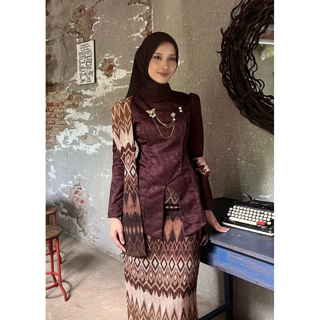 (Akita- KEBAYA JANGGAN AJENG JAGUAR SERIES ) Set Couple Atasan Blouse janggan Premium, Kemeja Batik Doby & Rok Doby Prem