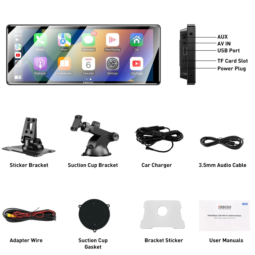 [PROMO] 7910inci Portable Carplay Nirkabel Portabel Multimedia Mobil Layar Sentuh Monitor IPS FHD
