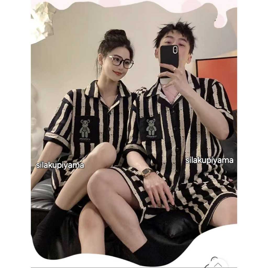 Baju tidur piyama couple bahan katun Kaos lengan pendek celana pendek kra kancing