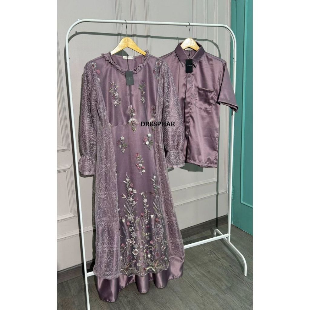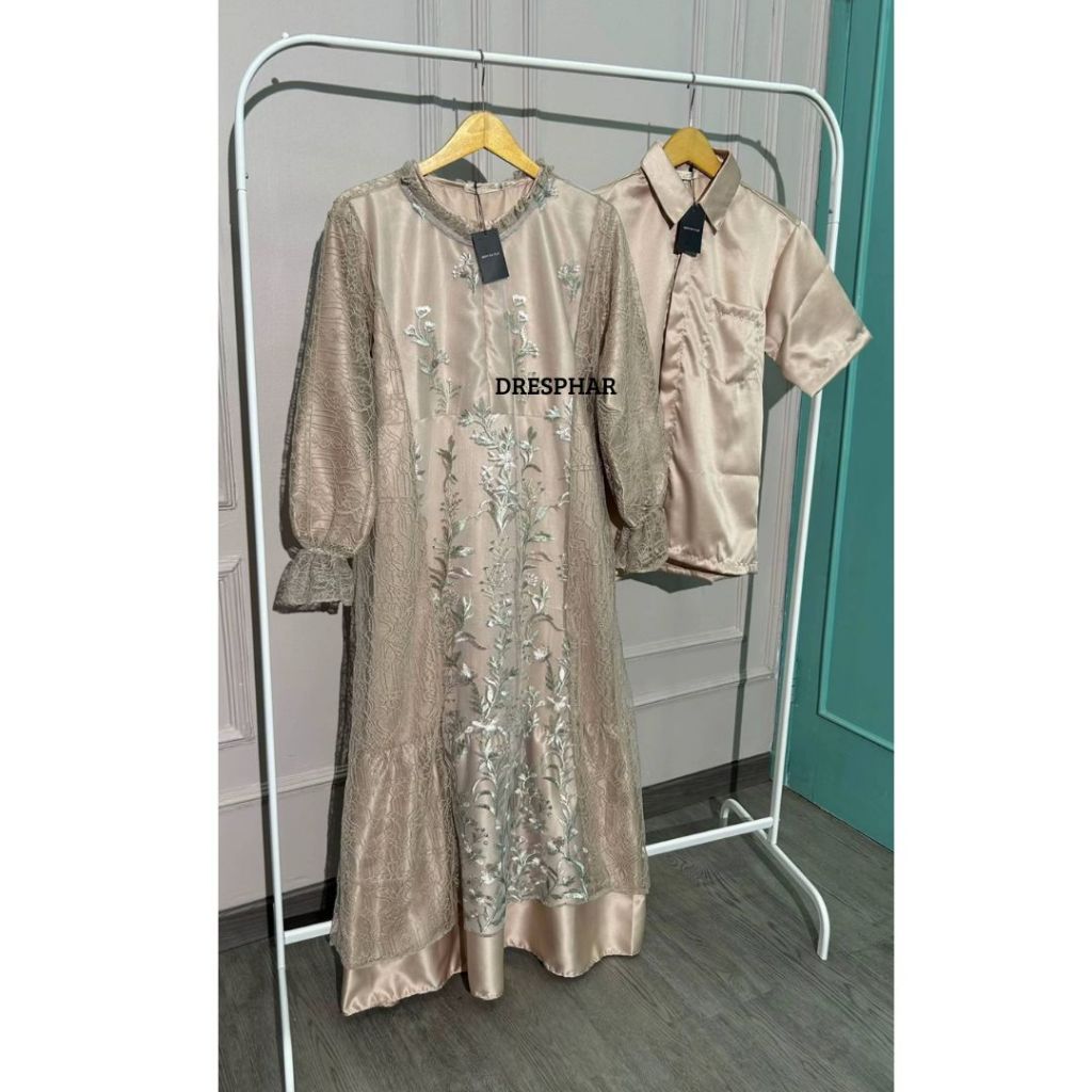 SETELAN COUPLE HANNA PASANGAN PRIA & WANITA HARI RAYA TERKINI BAJU COUPLE DRESS & KEMEJA BAHAN SATIN SIZE M, L, XL, XXL