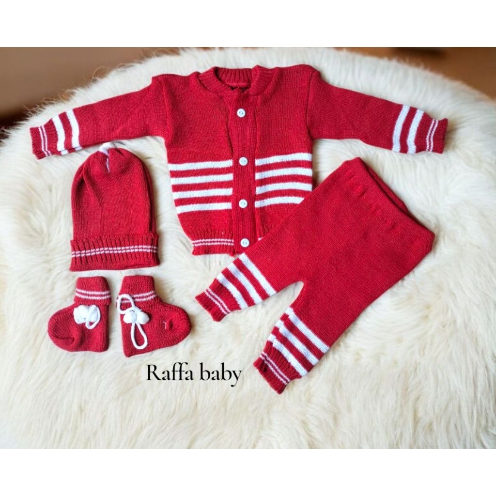4IN1 SETELAN RAJUT ,BAJU ,CELANA ,TOPI ,KAOS KAKI BAYI NEWBORN 0-3 BULAN