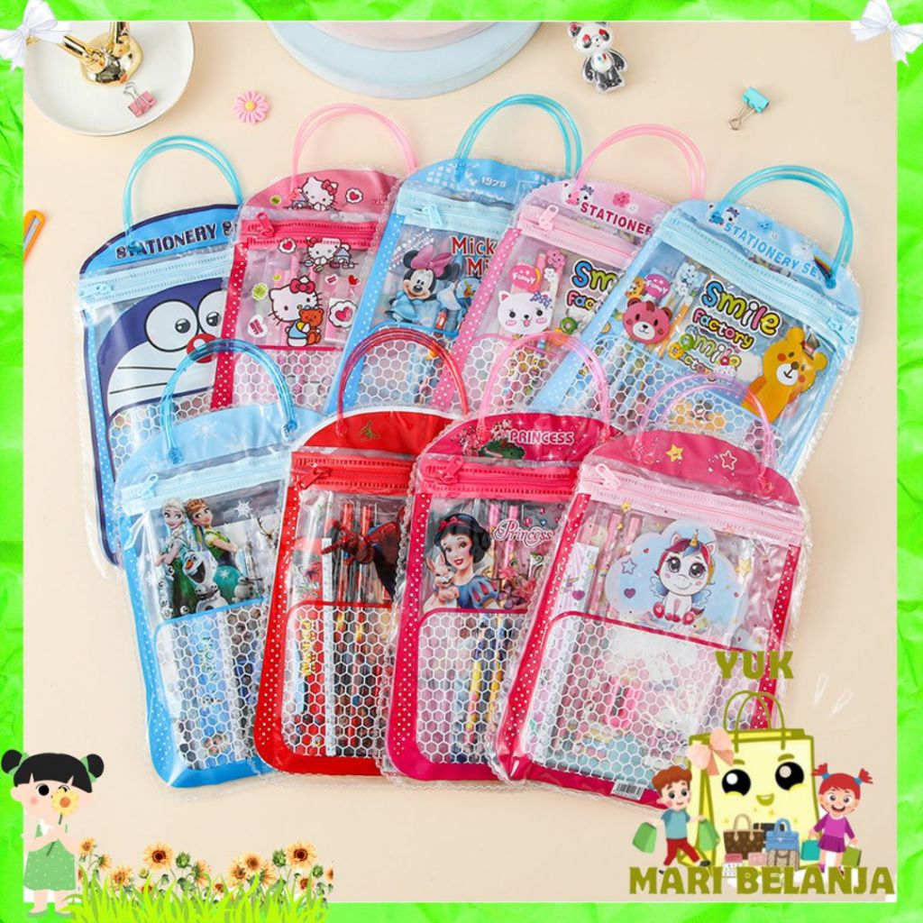 YMB Stationery Set 6 in 1 Free Bag Alat Tulis Anak Sekolah Buku Pulpen Penghapus Pengaris