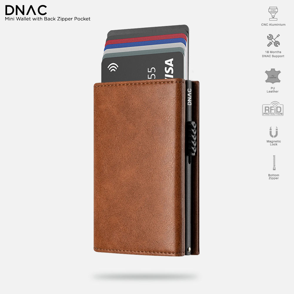 [PROMO] Mini Wallet Card Holder RFID with Back Zipper Pocket Brown