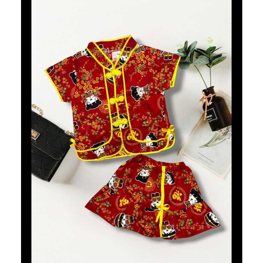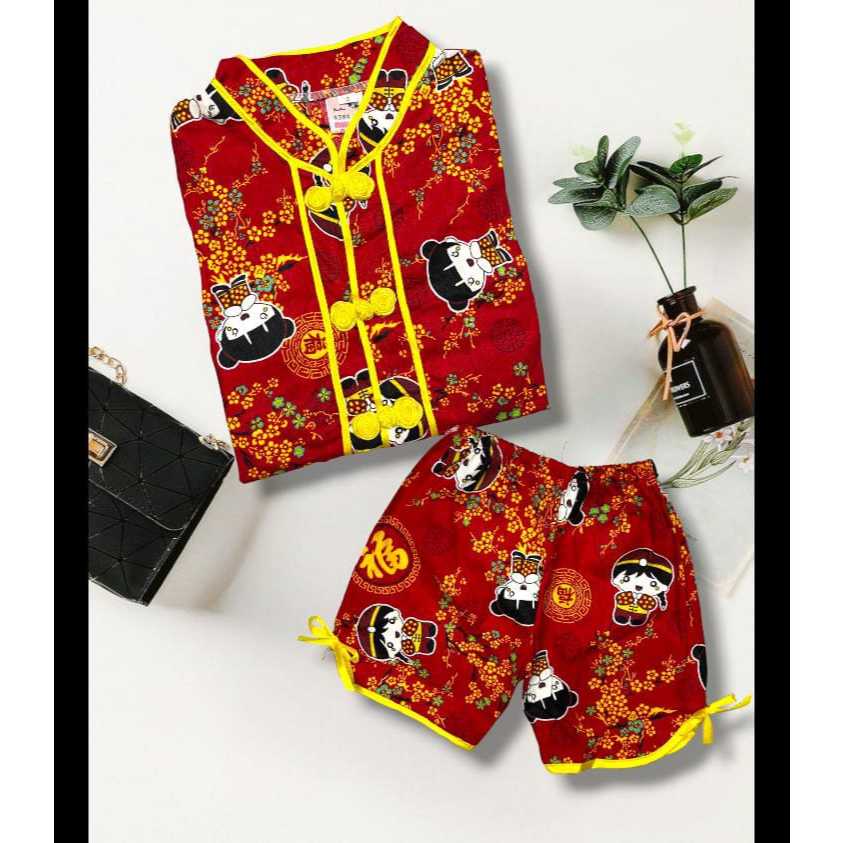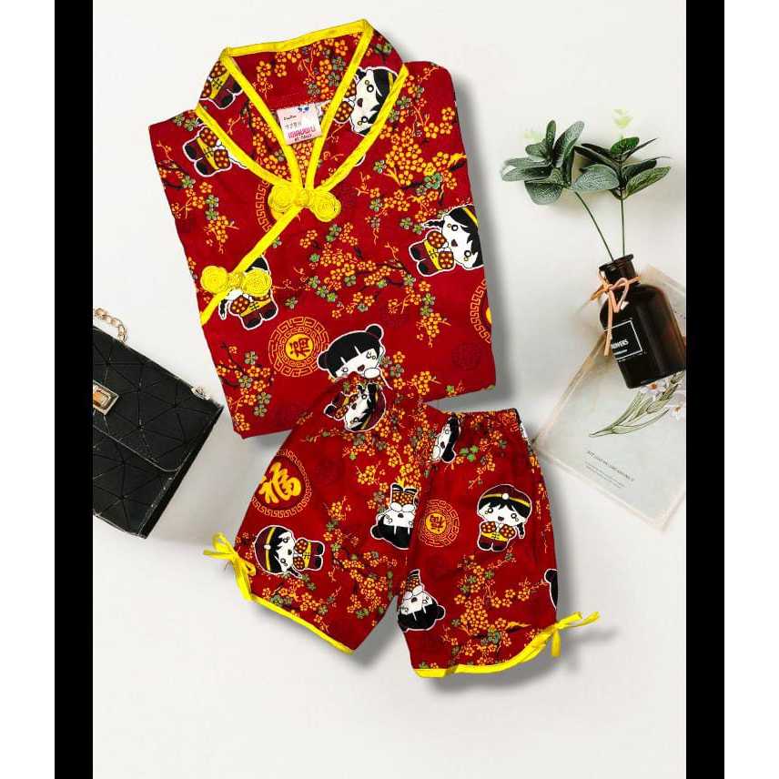 setelan baju imlek/cina anak usia 3 bulan sampai 10 tahun model desain terbaru katun bordiran
