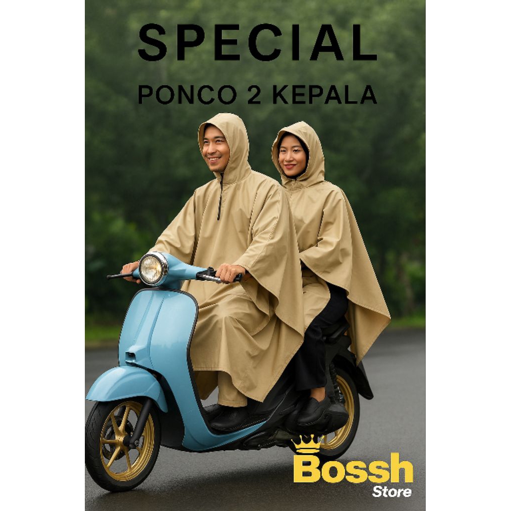 JAS HUJAN MOTOR PONCO 2 KEPALA (Tanpa celana ATASAN SAJA) DOBEL PONCO 2IN1 JUMBO PVC.