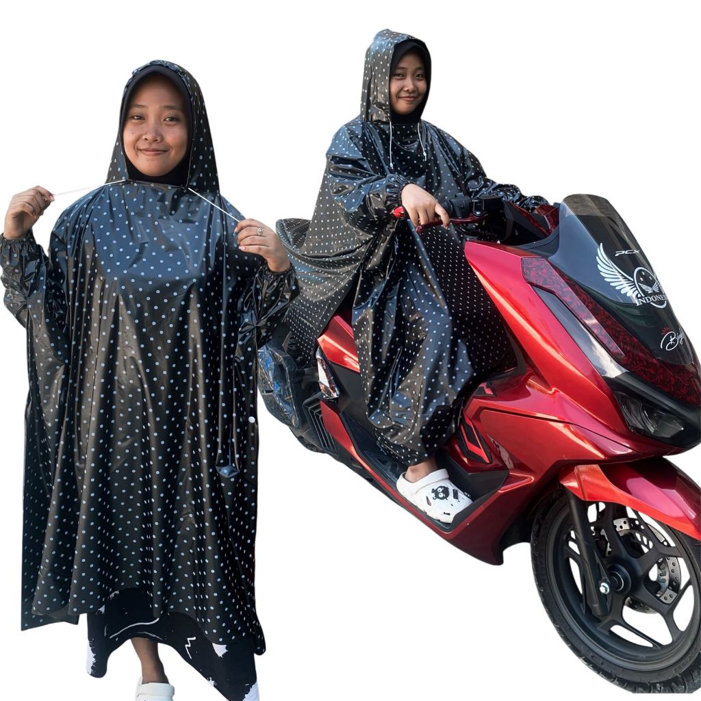 jas hujan ponco kelelawar lengan polkadot tebal dan anti bocor untuk wanita pria D3W4SA