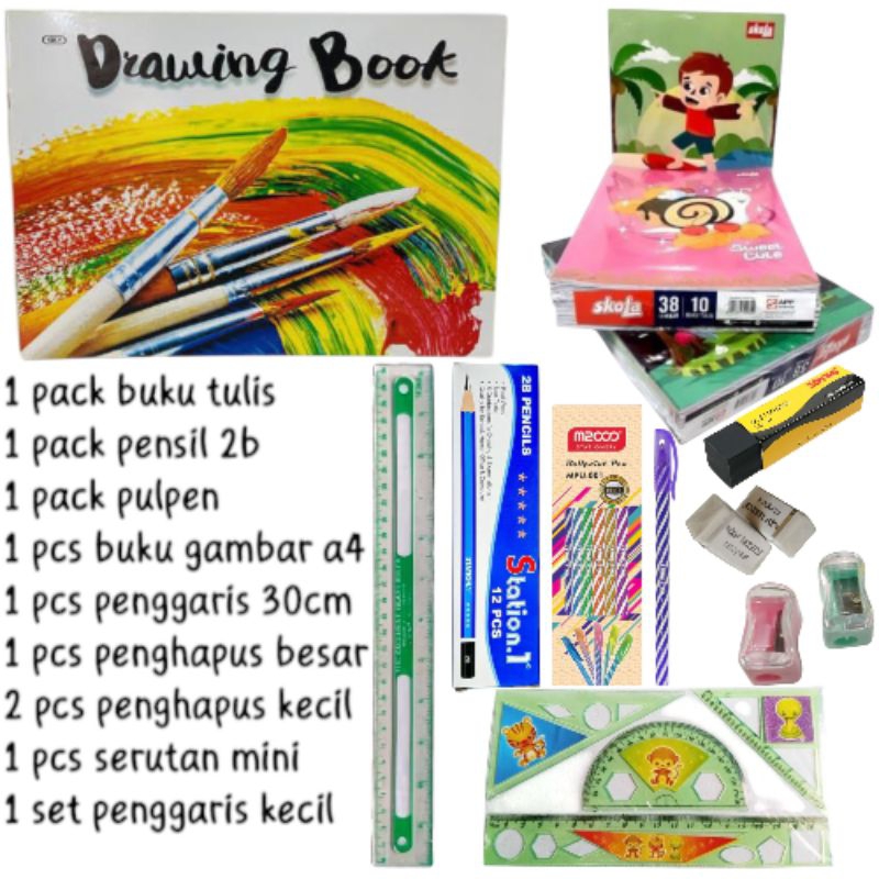 PAKET ALAT TULIS SEKOLAH (SD-SMP) PERLENGKAPAN SEKOLAH ALAT TULIS 1 SET 8 IN 1
