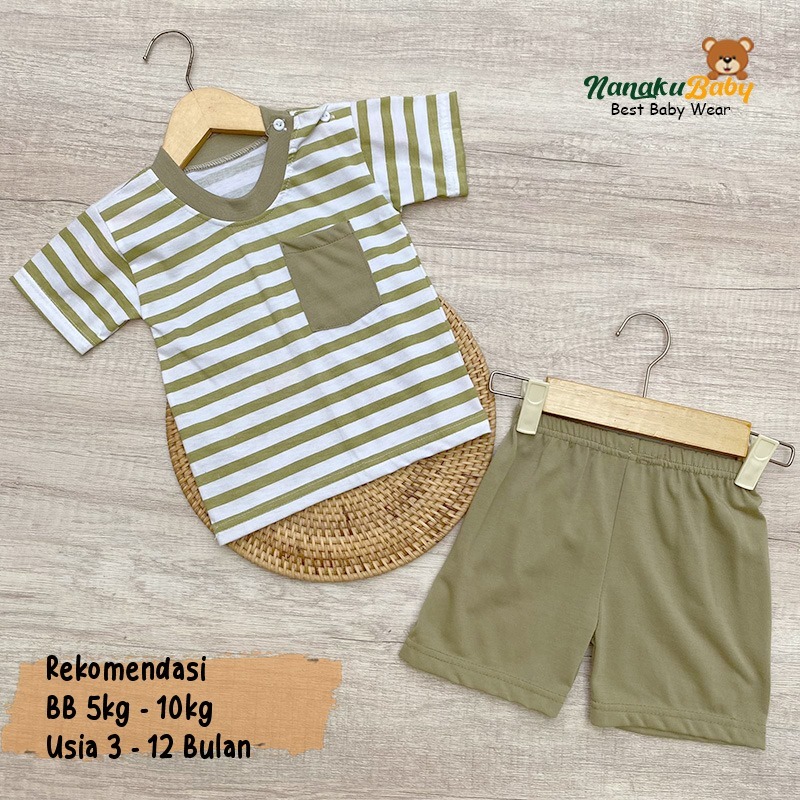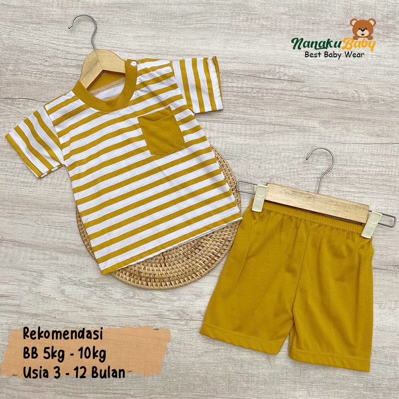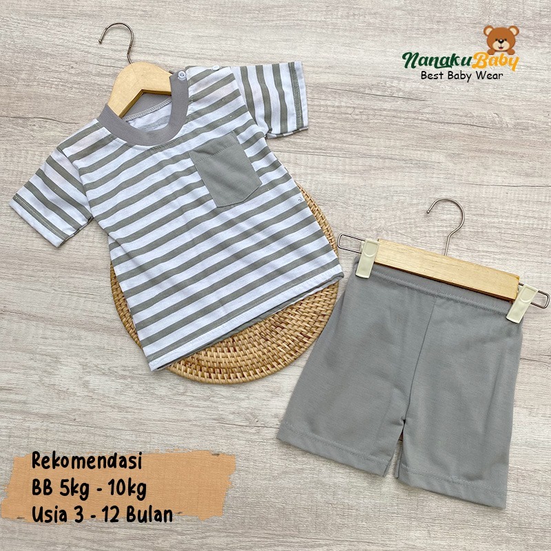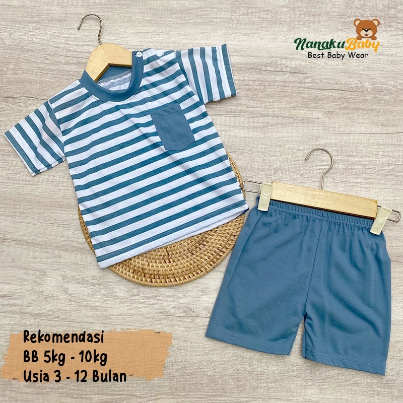 Setelan Baju Bayi Piyama Bayi Lengan Pendek Kancing Pundak Variasi Saku Usia 3-12 Bulan