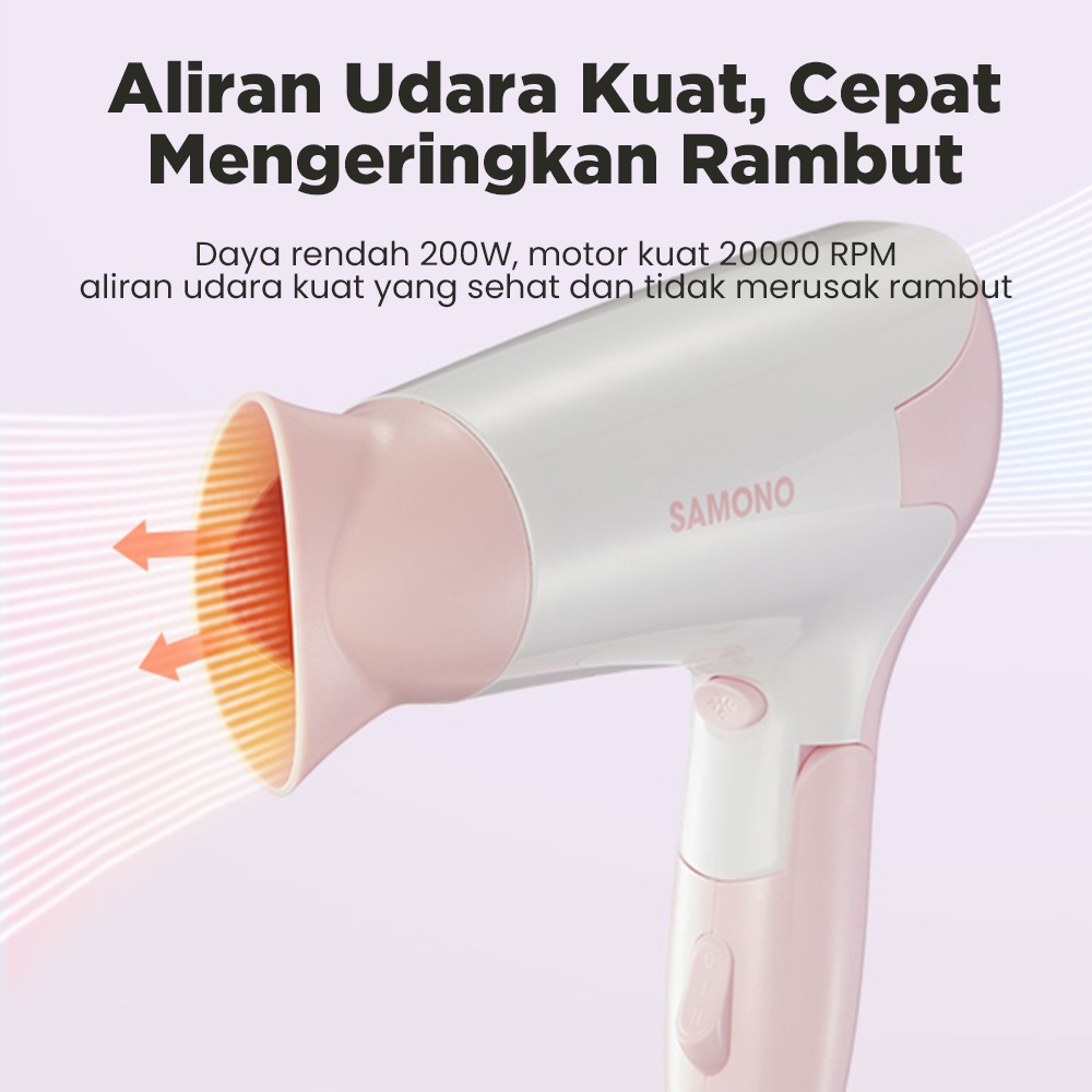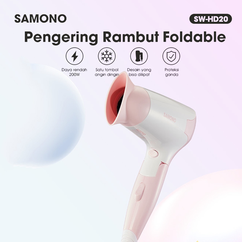 SAMONO Hair Dryer Pengering Rambut 2in1 Angin Dingin dan Panas 200 Watt Bisa Dilipat SW-HD20 Garansi 1 Tahun