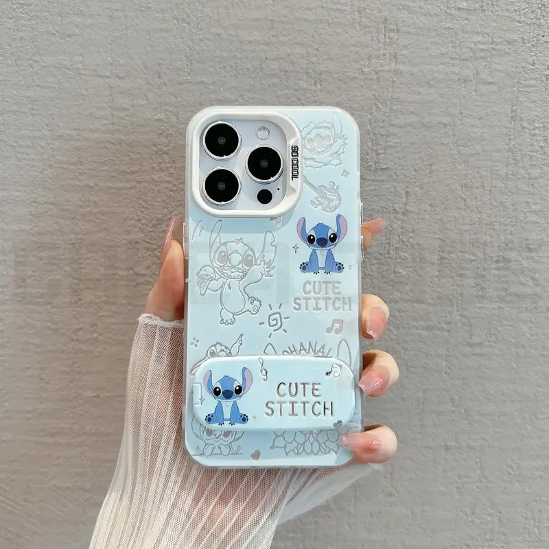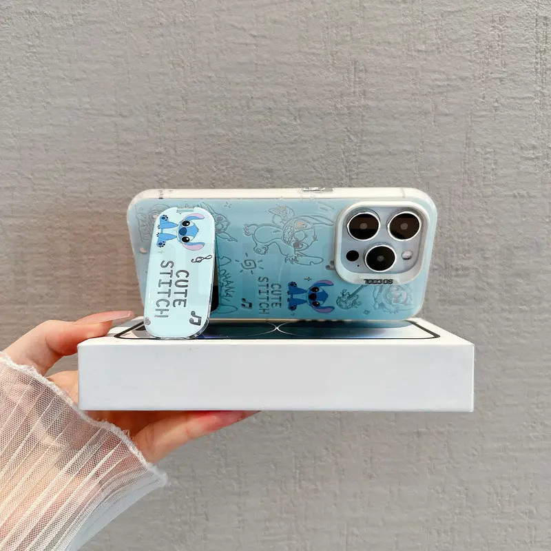 IMD ins Softcase + Kaca Popsocket Case iPhone 16 11 12 13 14 15 PRO MAX X XS MAX XR 6 6s 7 8 PLUS TPU Casing Hp iPhone Stitch Biru Lucu Aesthetic Premium Anti jatuh unik W001346