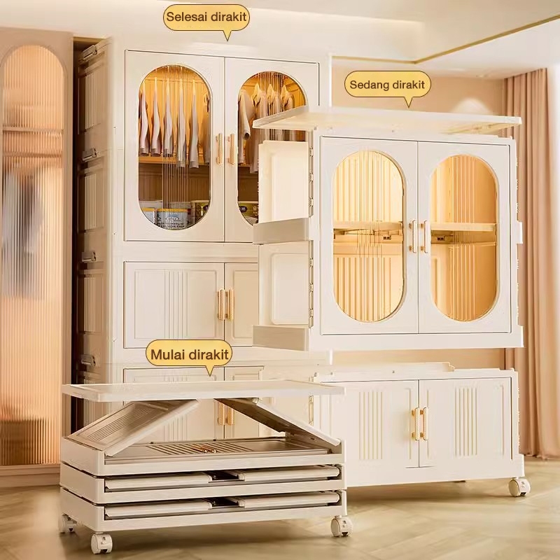 HOhome Besar Lemari Pakaian Plastik GANTUNG Lemari Plastik Susun Lemari Baju Plastik Lipat ada roda