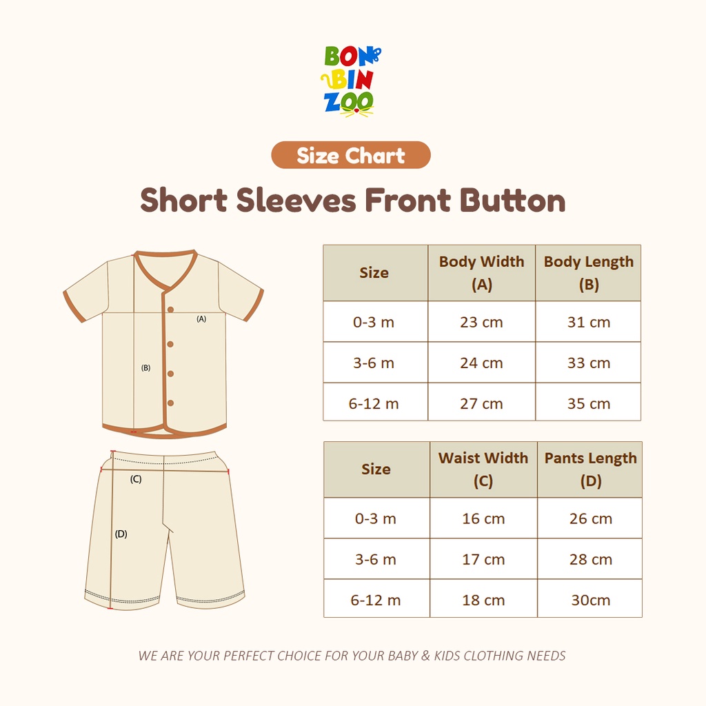 BONBINZOO - Setelan Pendek Anak Bayi Nature Series Kancing Depan 0 -12 Bulan
