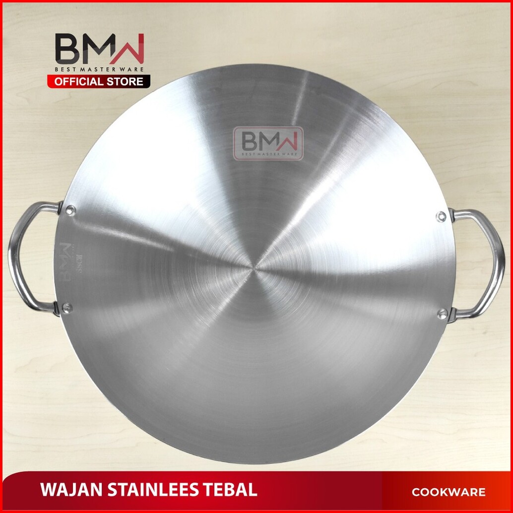 Bmw Kitchen Ware - Wajan Premium Tebal Kuali Penggorengan Wok Stainless Steel Wajan Anti Lengket Food Grade