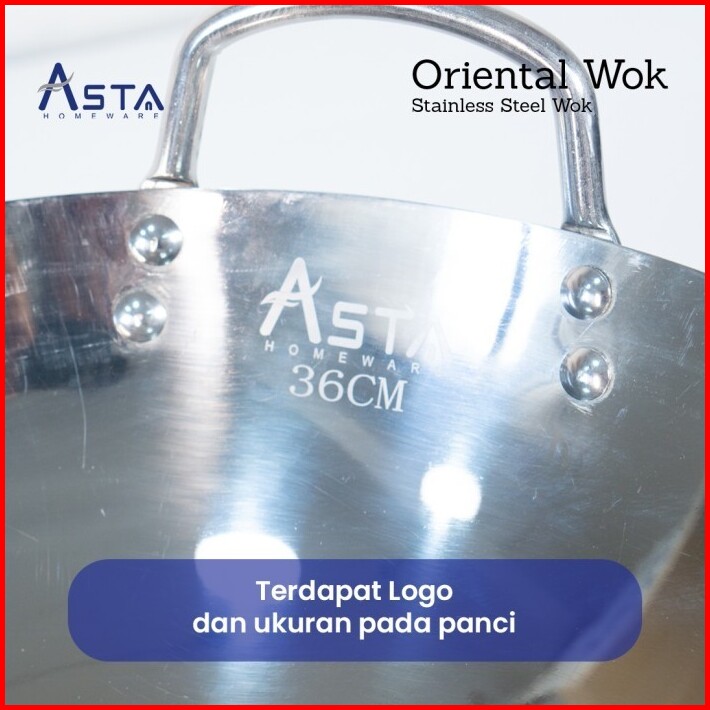 Asta Wajan Stainless Steel Oriental Wok Penggorengan Tebal 28 Cm