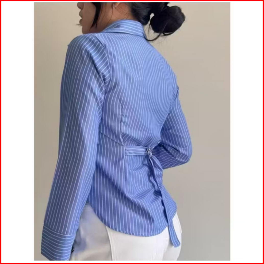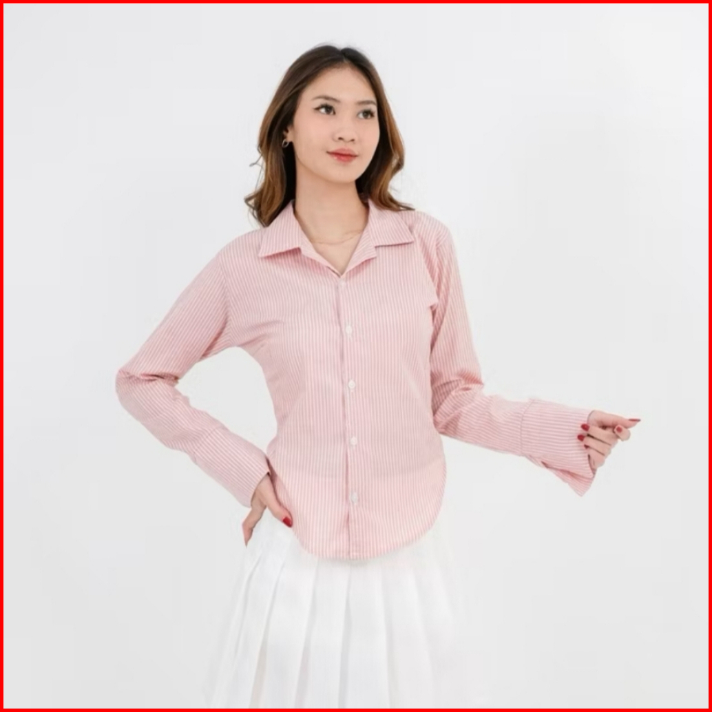 Ezzy Fitted Shirt Atasan Kemeja Wanita Kemeja Salur Stripe Slim