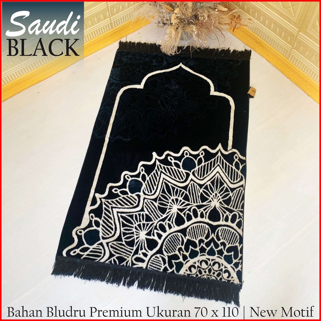 Sajadah Turki Premium Tebal Lembut Khusus Hitam Bunga Floral Saudi Terbaru