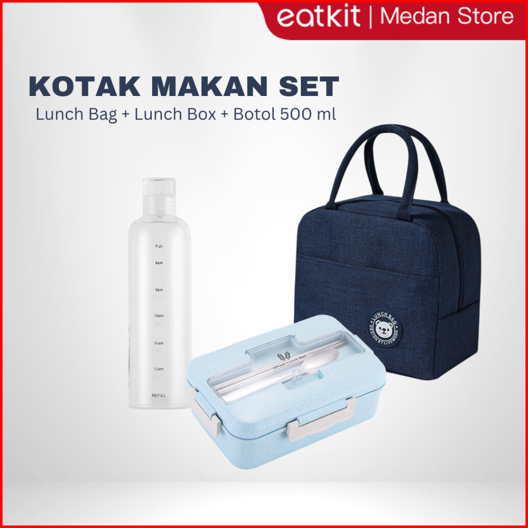 Medan Ready Stock Eatkit Lunch Box Set 1000ml Kotak Bekal Makan Jerami Gandum Kotak Makan Free Sendok Sumpit