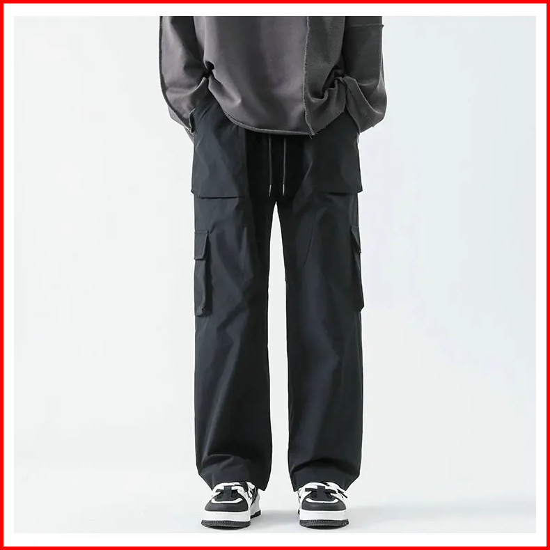Sigma Aiden Celana Cargo Pria Multi Pocket Streetwear Kasual Harajuku Style Kekinian