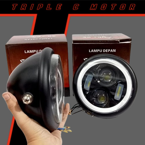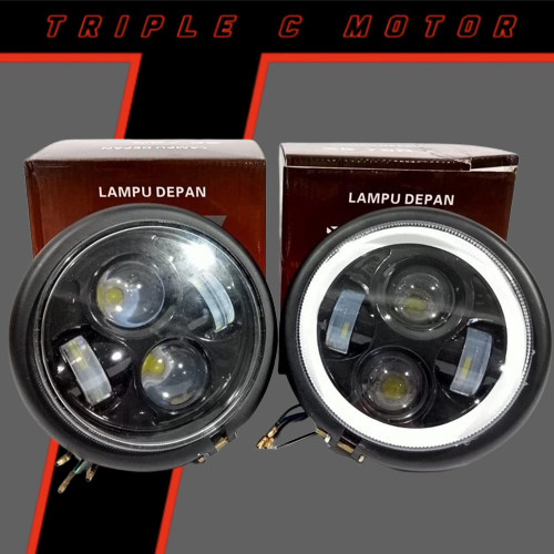 Lampu Depan Angel Eyes 4 Led 5.75 Inch Reflektor Custom Lampu Depan Japstyle Black Edition Seven