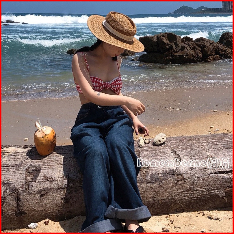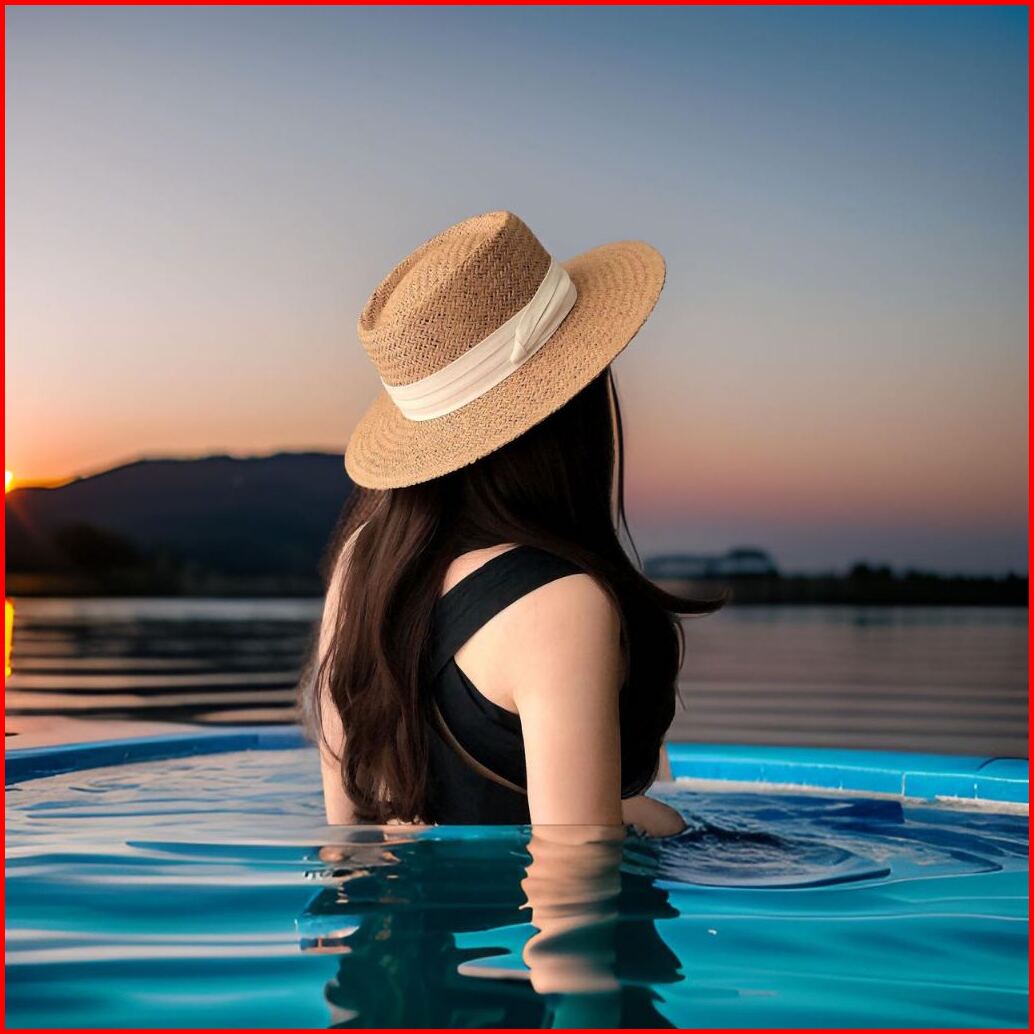 Topi Pantai Topi Pantai Wanita Bahan Jerami Tebel Premium Gaya Korea Berhijab Anti Uv Maystar T111