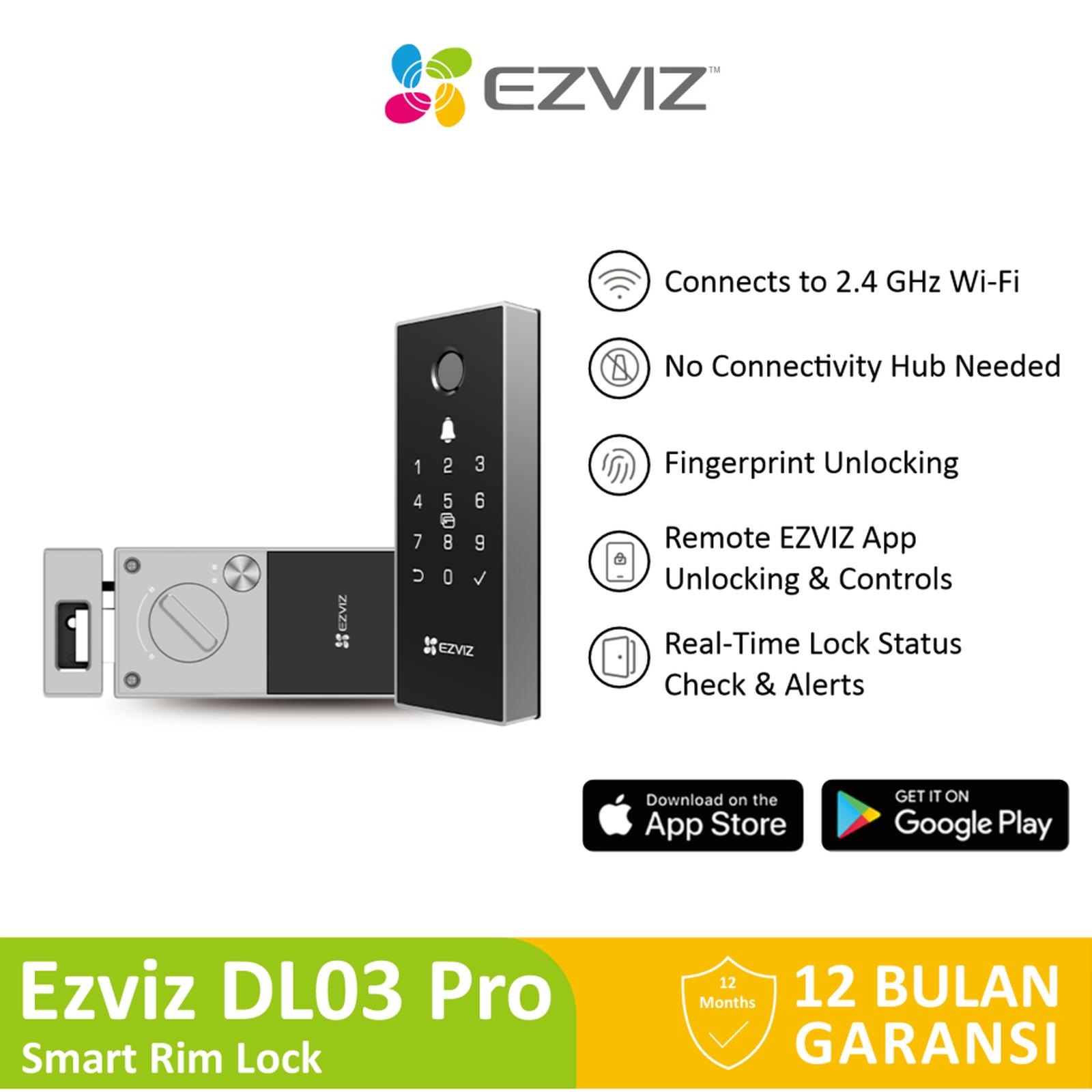 EZVIZ DL03 PRO SMART DOOR HOME FINGERPRINT RIM LOCK DOORLOCK