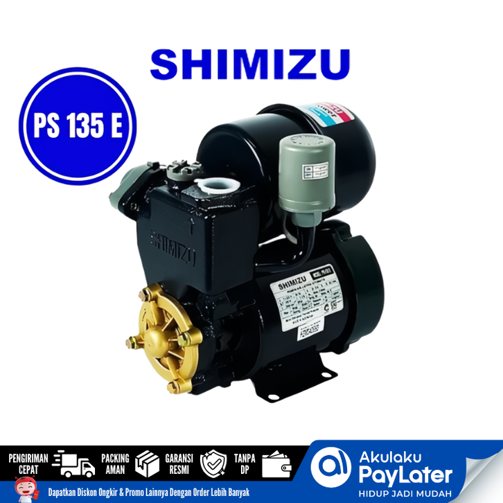 Shimizu Pompa Air Sanyo Otomatis PS 135 E Daya Hisap 9m Murah Nasional Panasonic Jet Pump Aquarium Galon Celup Mini