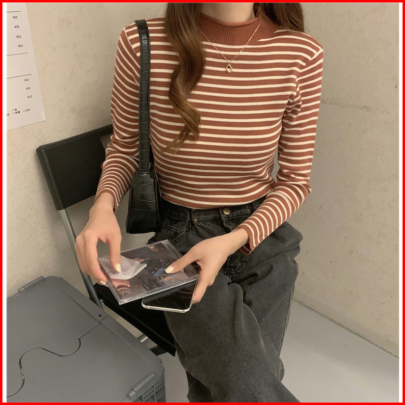 Pakaian Wanita Baju Atasan Lengan Panjang Import Manset Baju Wanita Premium Sweater Model Cantik Inner Bj-6025