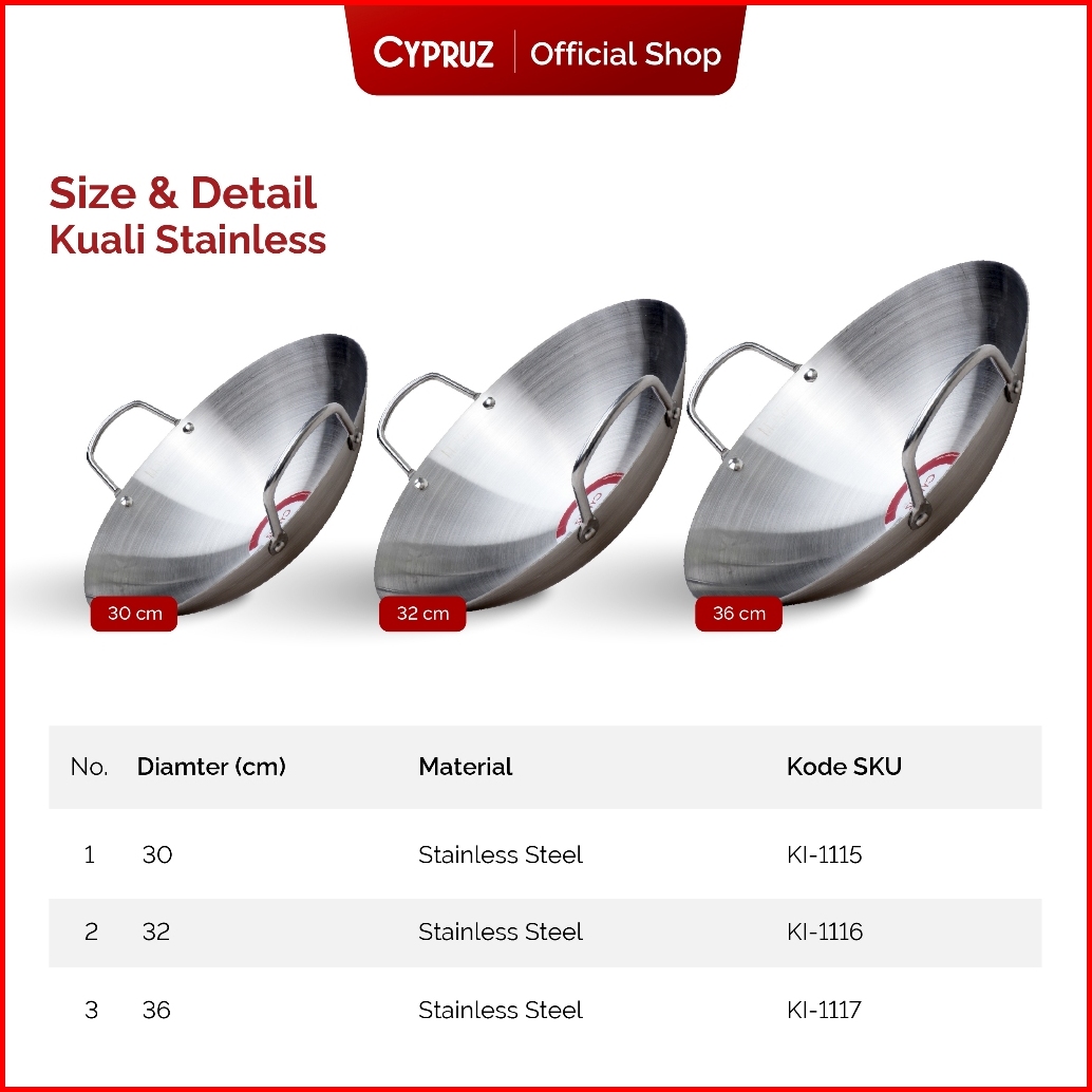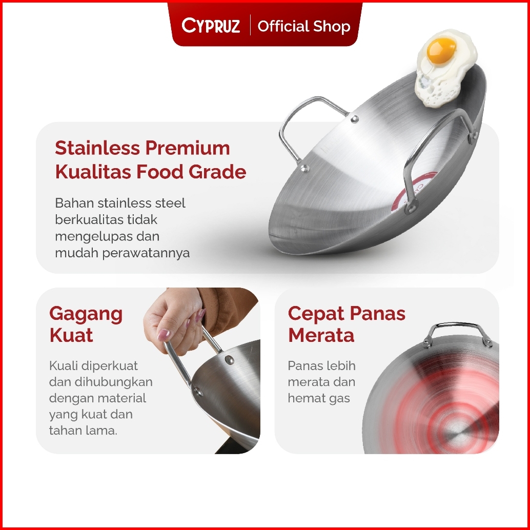 Cypruz Wajan Stainless Tebal Kuali Besar Premium Dengan Gagang Stainless Steel Anti Gores