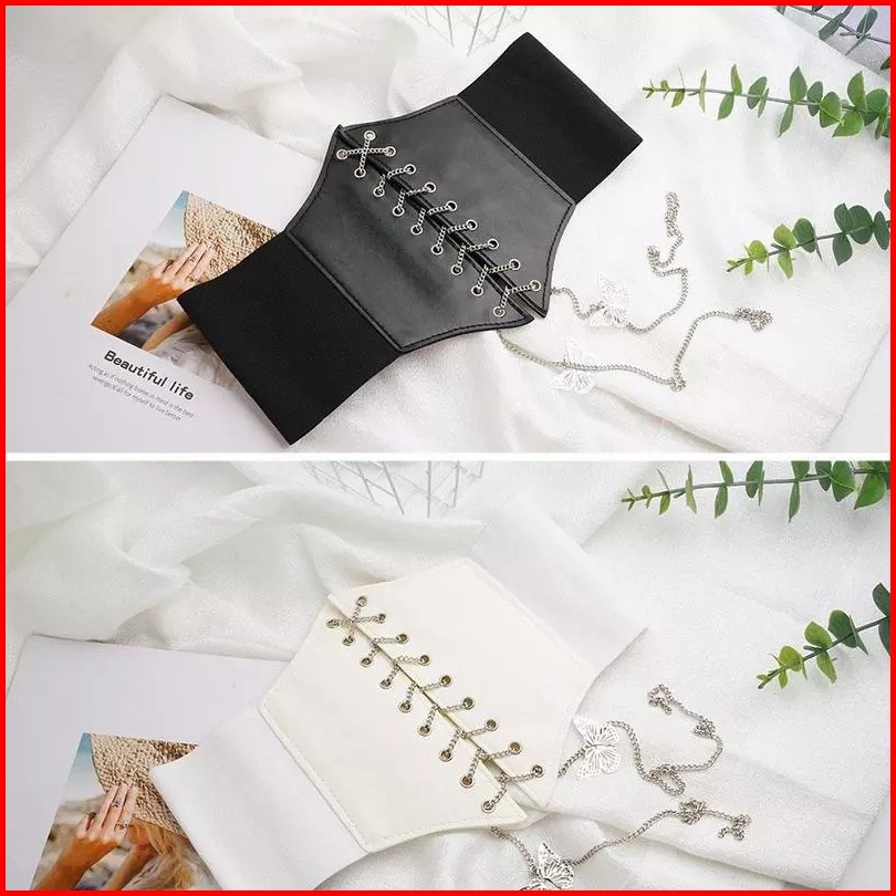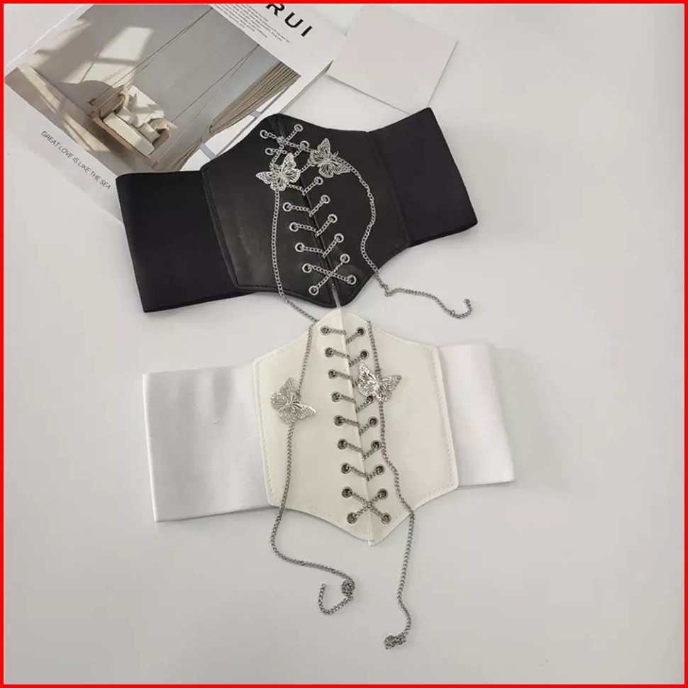 Belt Korset Sabuk Wanita Rantai Kupu Gotik Ikat Pinggang Renda Bustier