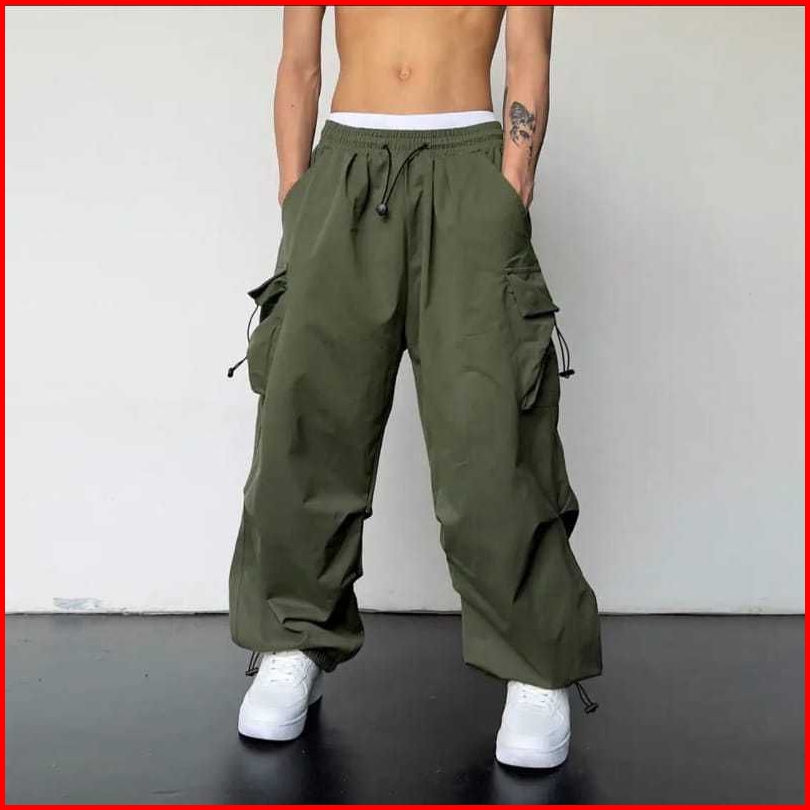 Celana Cargo Pria Panjang Model Terbaru High Waist Korean Stail Casul Tali Serut Pinggang Karet