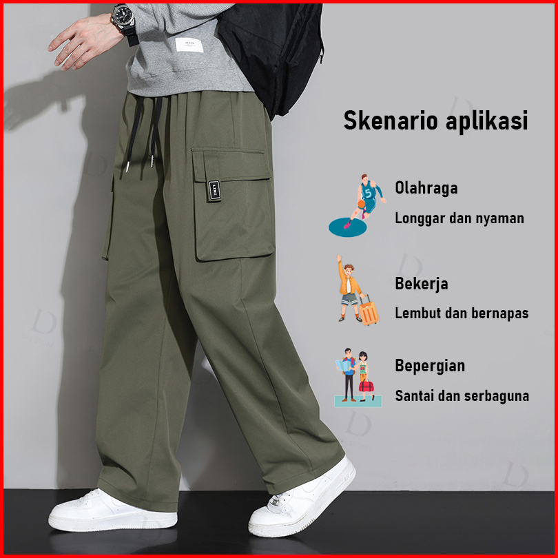 Celana Cargo Panjang Pria Korean Baggy Pants Celana Kargo Loose Cargo Long Pants Outdoor Celana Pria
