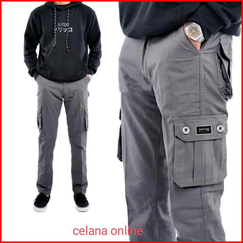 Cargo panjang hitam, Cargo panjang grey, Cargo panjang mocca, Cargo panjang army, Cargo panjang krem, Cargo pendek grey, Cargo pendek hitam, Cargo pendek krem, Cargo pendek army, Cargo pendek mocca