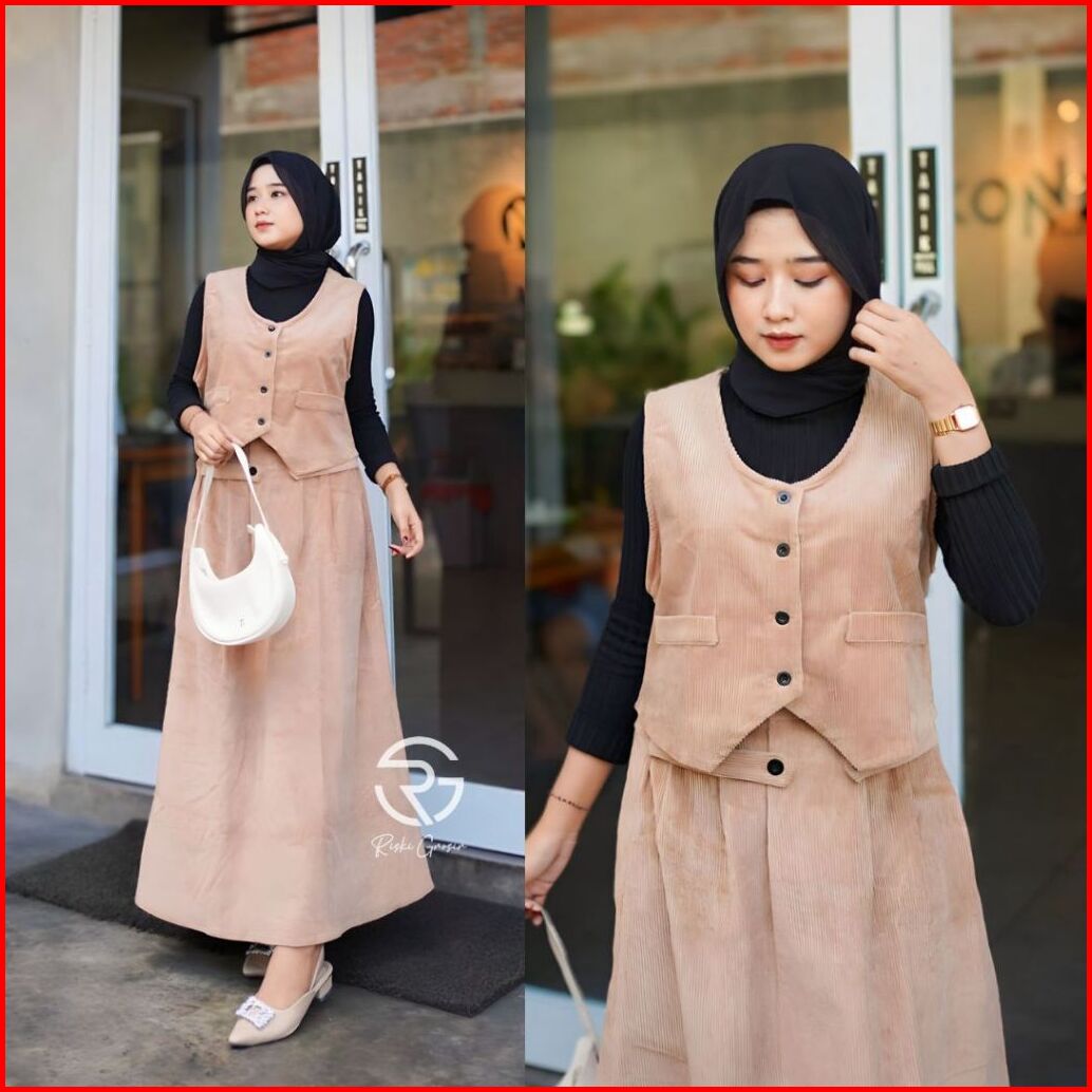 Sella Vest Corduroy Rompi Wanita Corduroy One Set Wanita Kekinian Rompi Premium Emma Set Vintage