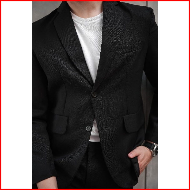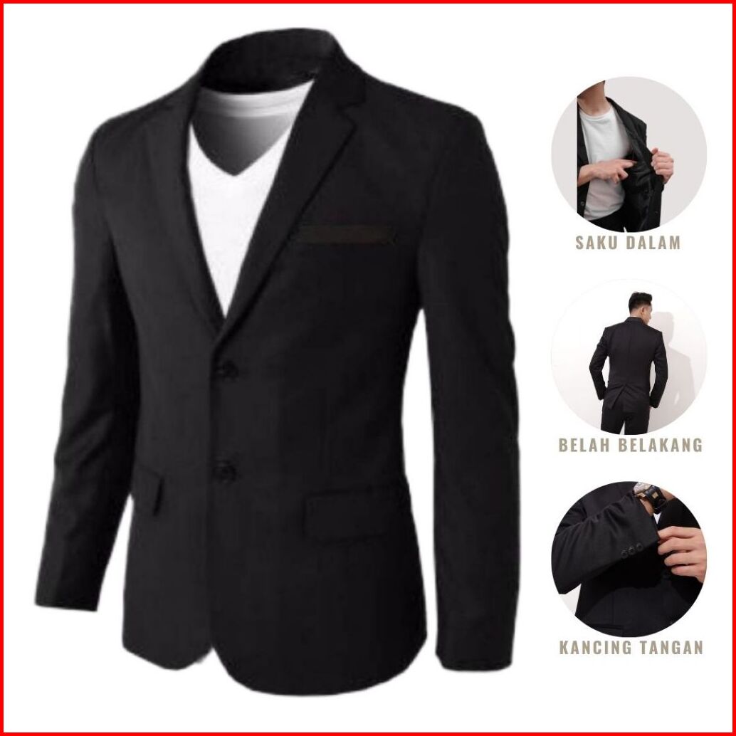 Jas Pria Hitam Buat Wisuda Nikah Kondangan Blazer Slimfit Kuliah Kerja Kantor Bahan Valencia Twist