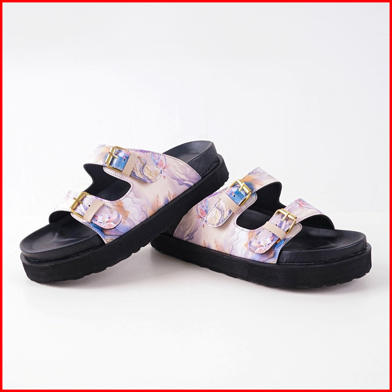 Mauroco - Veluna Sandal Wanita Kekinian Motif Bunga Sandal Slip On Cewek Dua Strap Nyaman