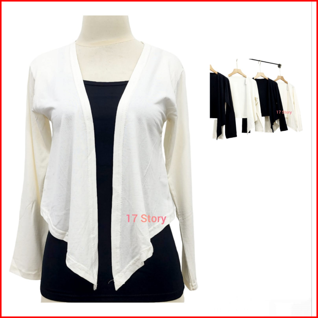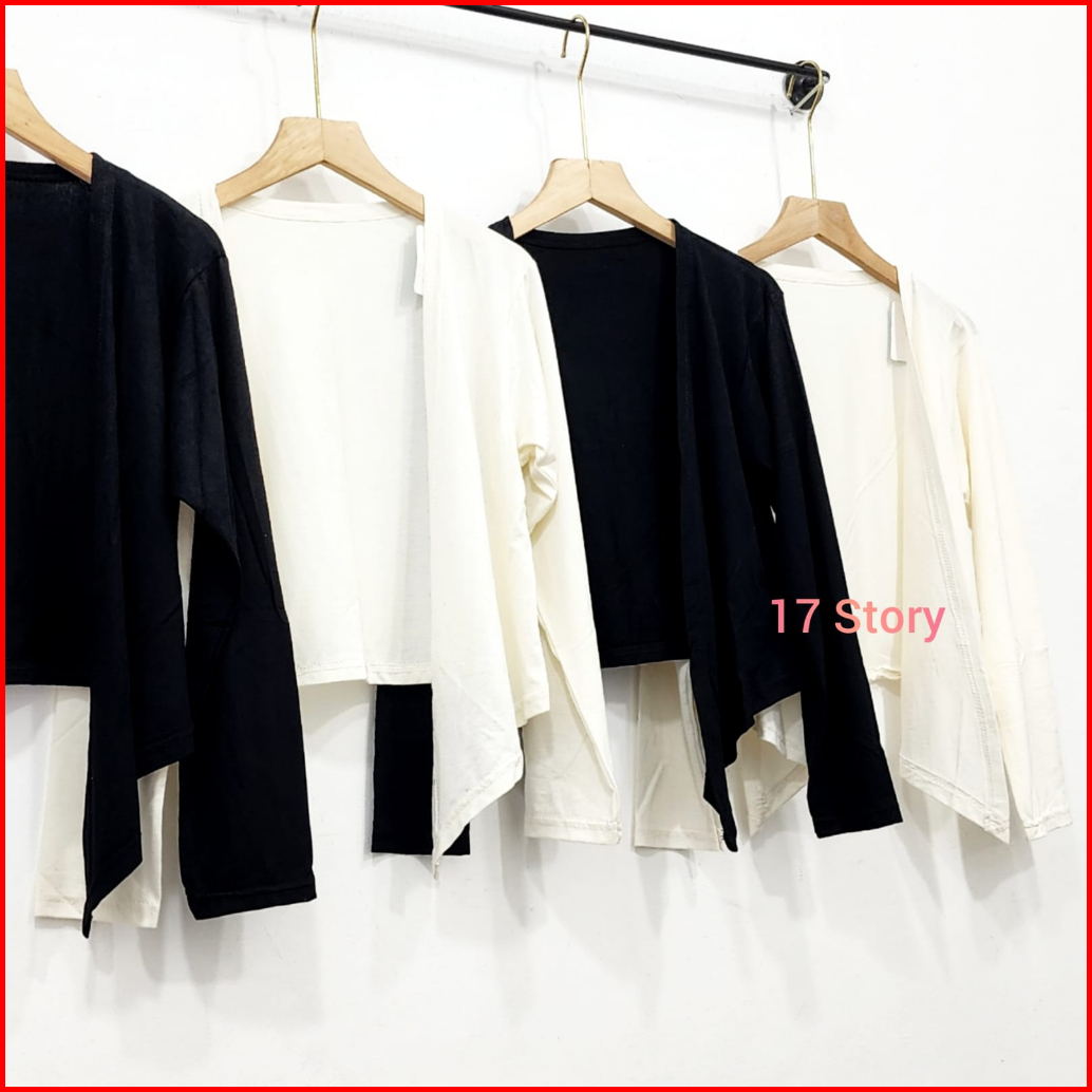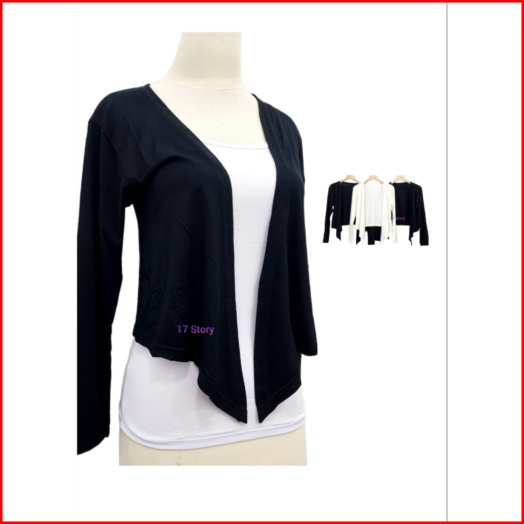 Cardigan Crop Top Wanita Basic Polos Kekinian Korean Style Premium Lengan Panjang Bahan Adem Dan Lembut
