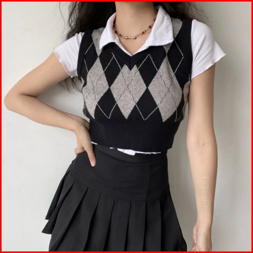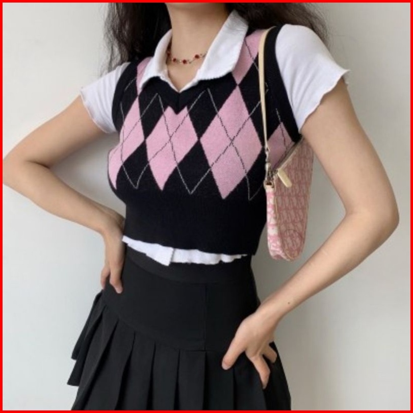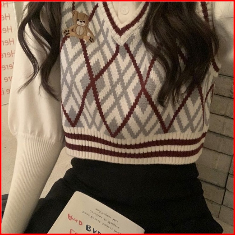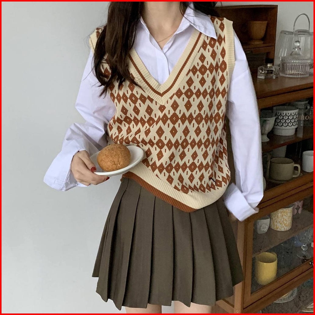 Rompi Rajut Import Sido Motif Ketupat Argyle Vest Knitted Simetris