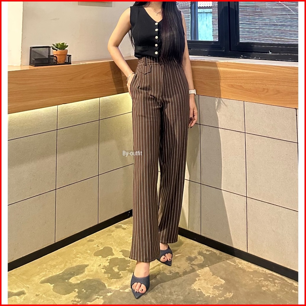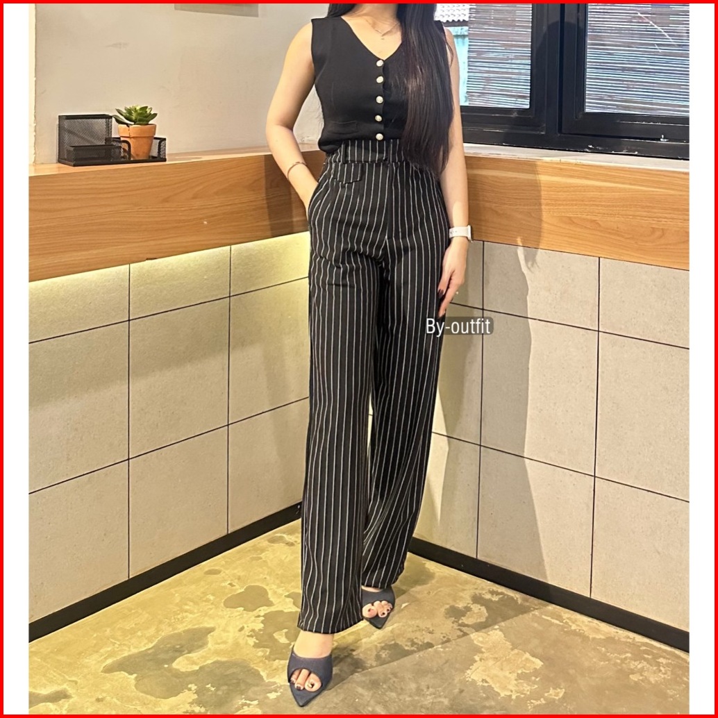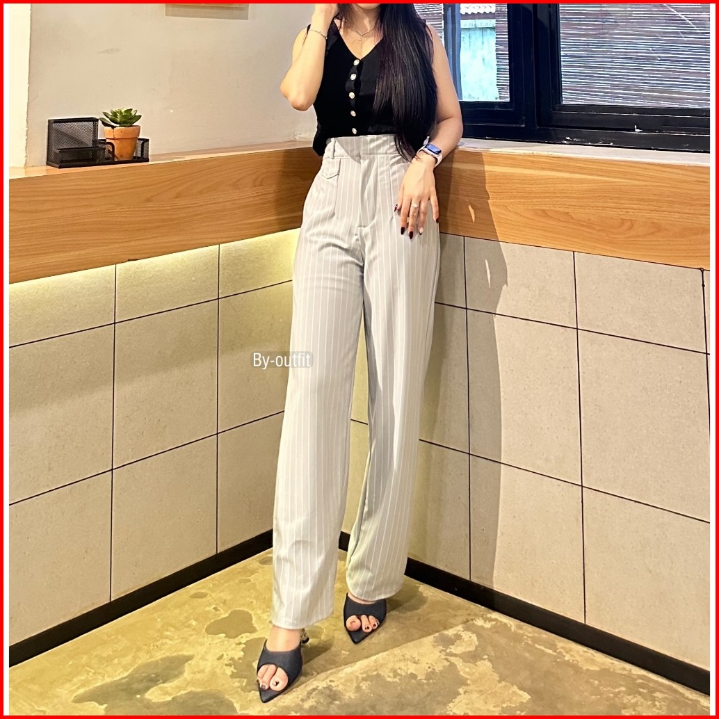 By Outfit - Oro Pants Stripe - Loose Pants Bangkok Celana Anti Kusut Celana Panjang Korean Style Kulot Wanita