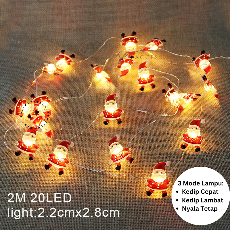 SONRISA NEWLampu Natal 2 Meter Mini Santa Rusa Snowman Lampu Tumblr LED Dekorasi Hiasan Pohon Natal