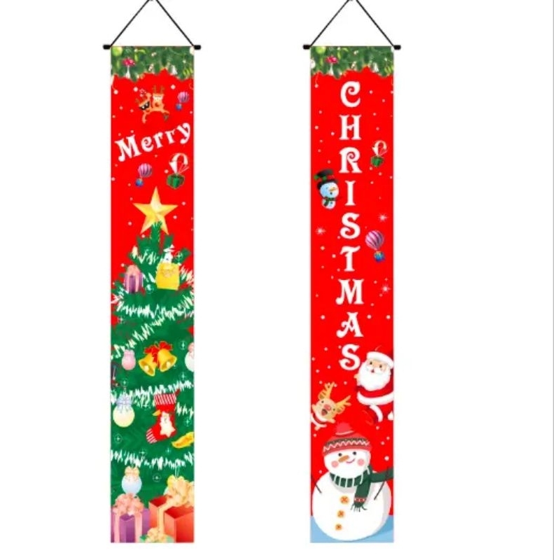 2PC Spanduk Natal Merry Christmas Banner Sign Christmas Front Porch Door Decoration