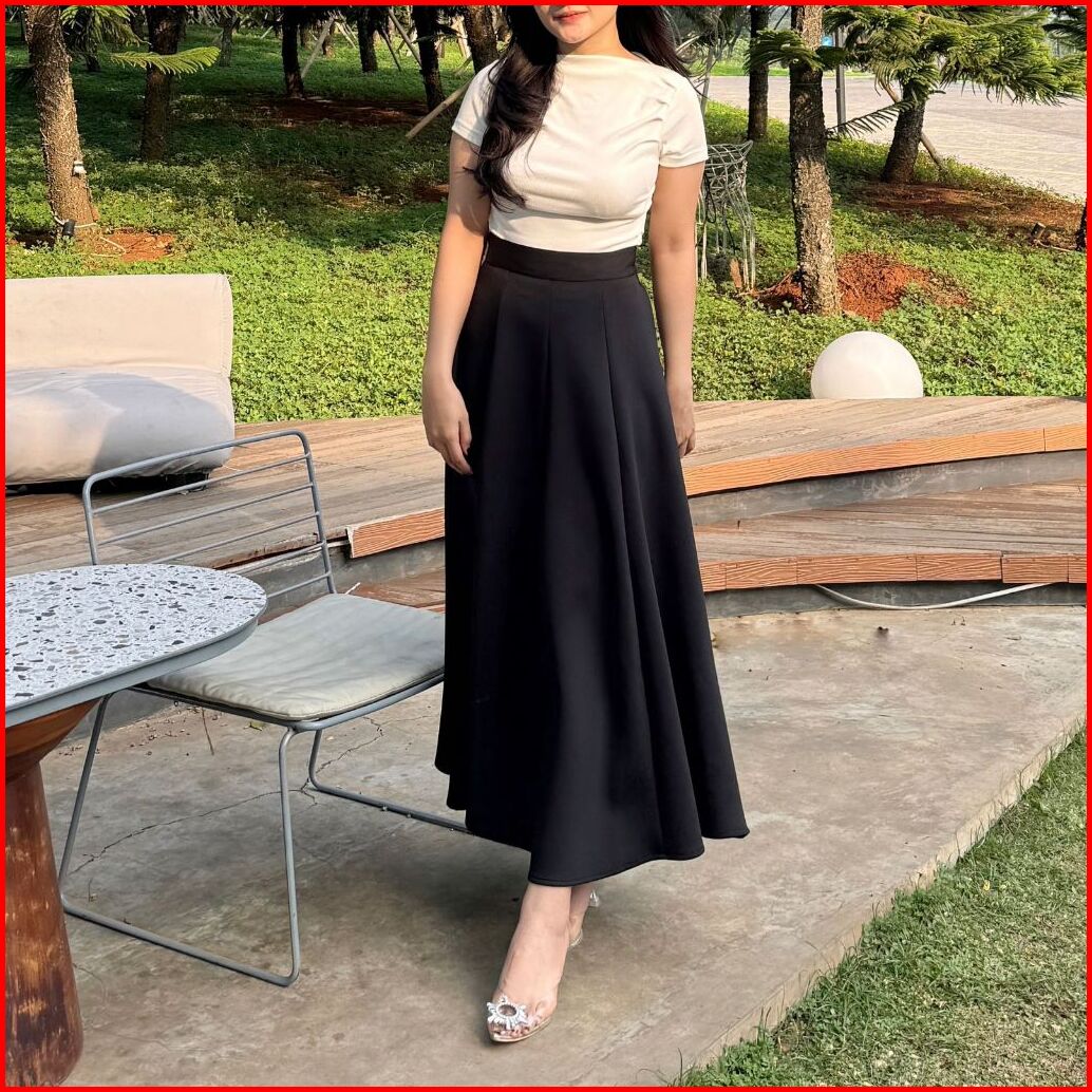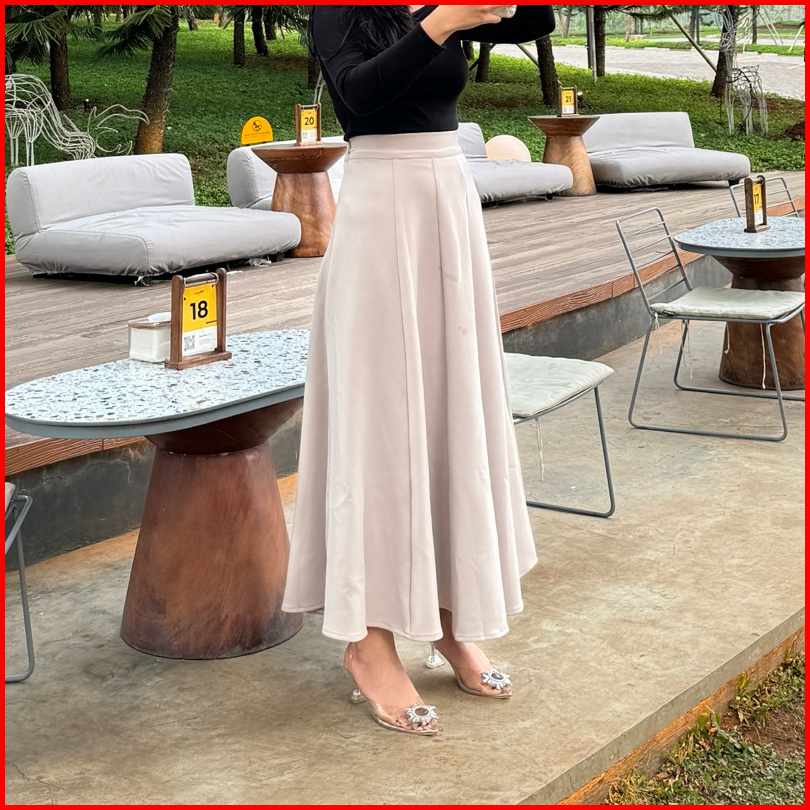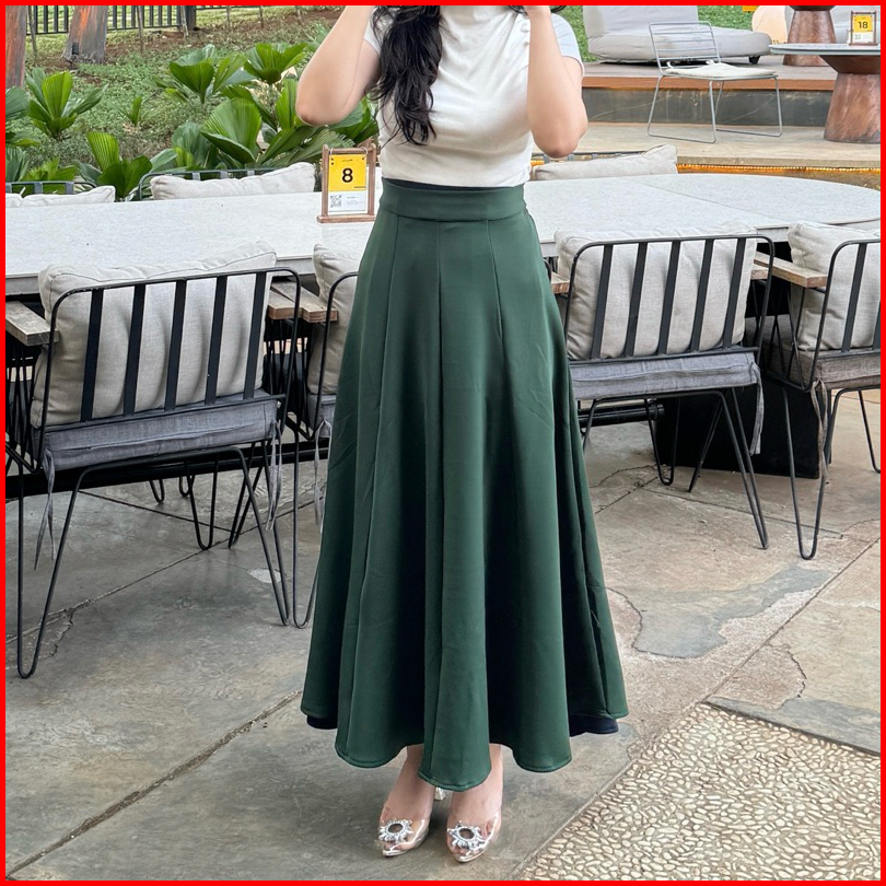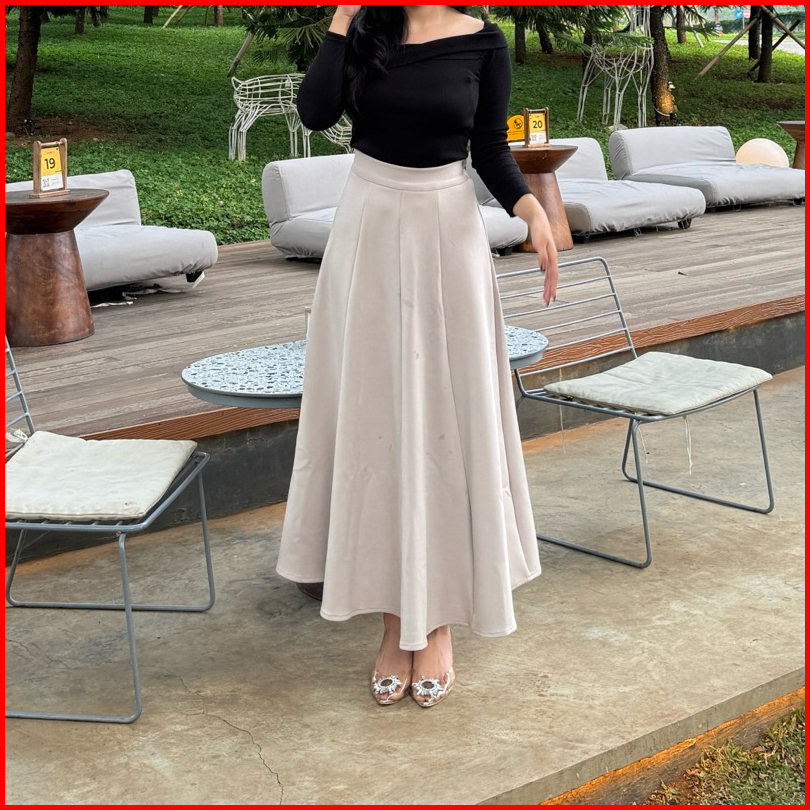 Audy Skirt - Korean Loose Maxi Skirt Rok Wanita Anti Kusut Polyester - Rok Flare Wanita - Rok Basic Polos - Maxi Skirt R