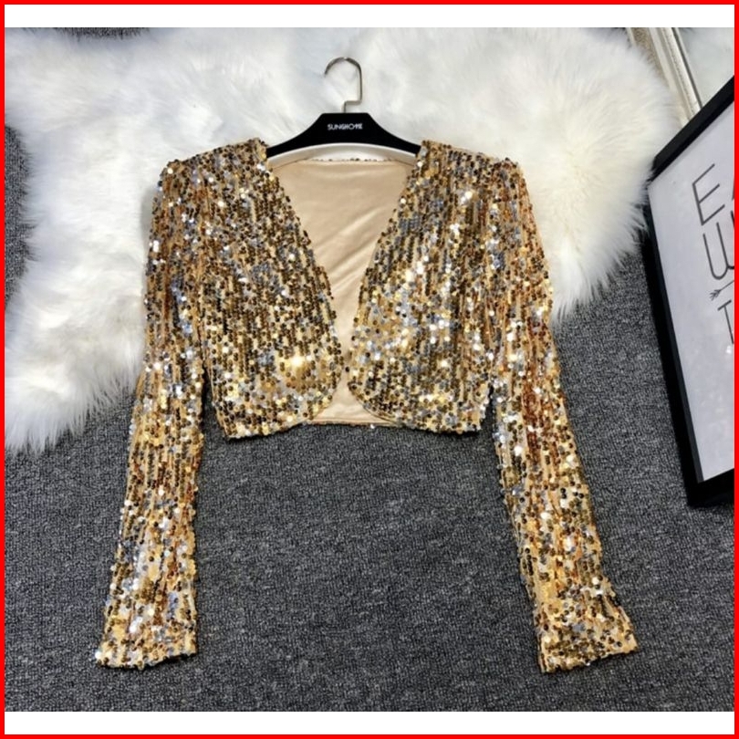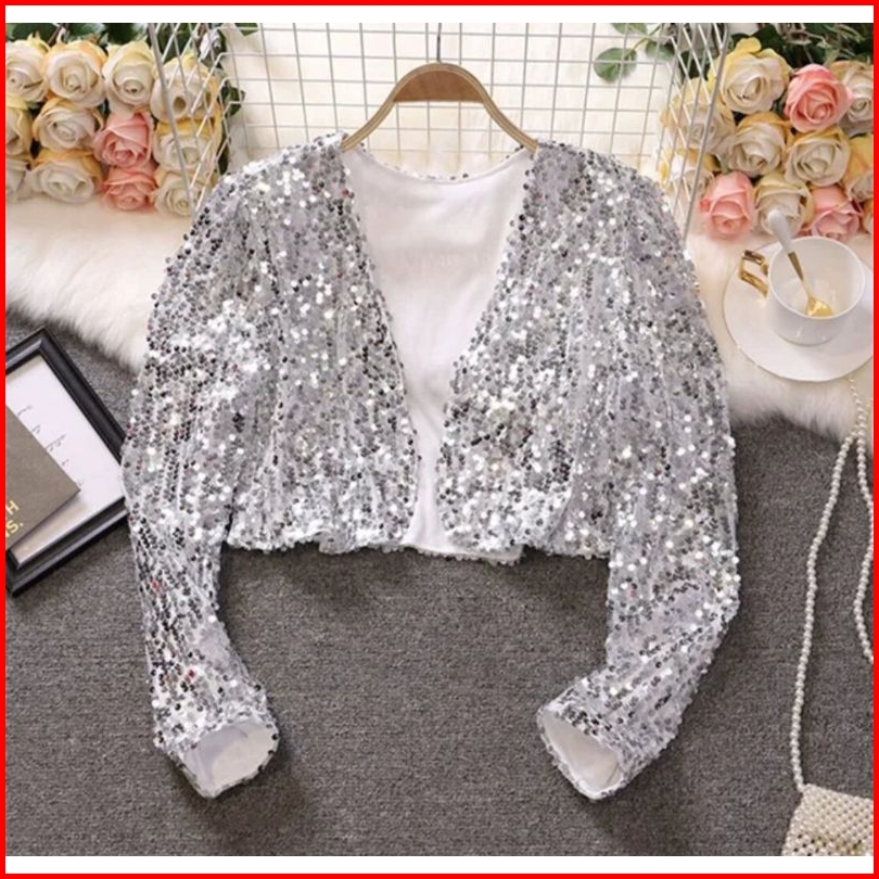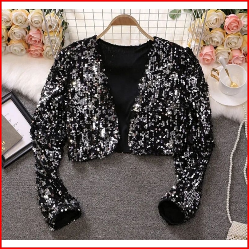 Blazer Crop Wanita Full Payet Korean Style Keren Exclusive