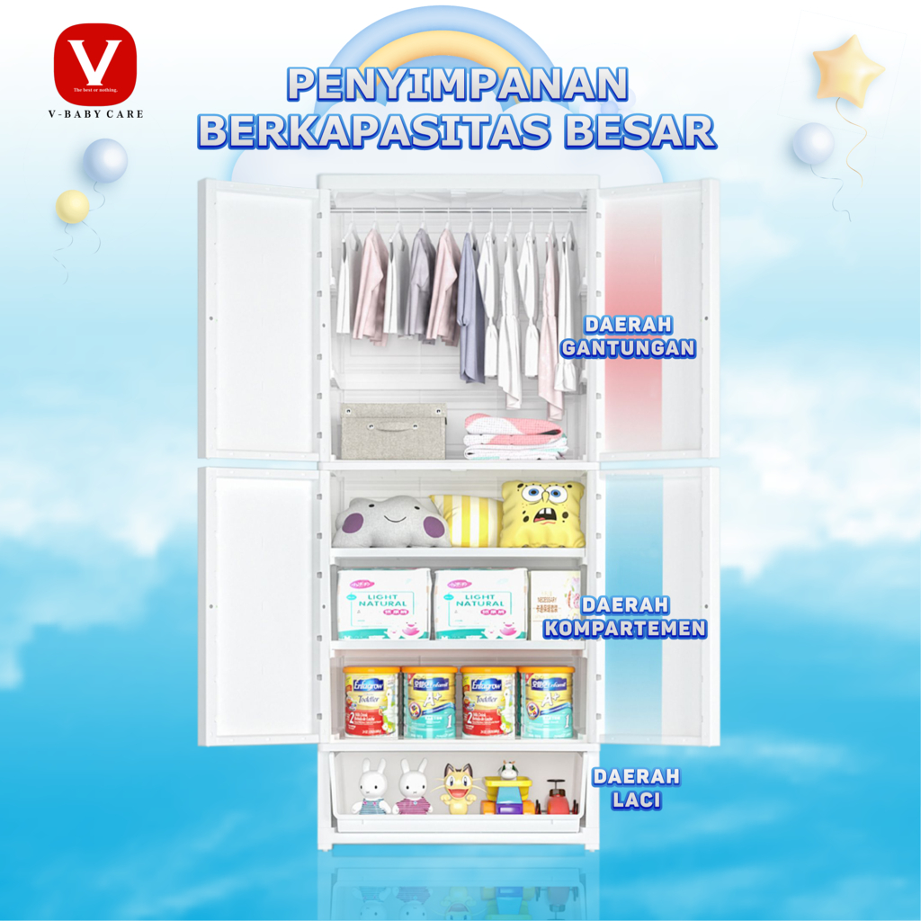 V-BABY CARE - Lemari Pakaian Anak 65CM / Lemari bayi Plastik / Plastic Storage Cabinet Lemari T6