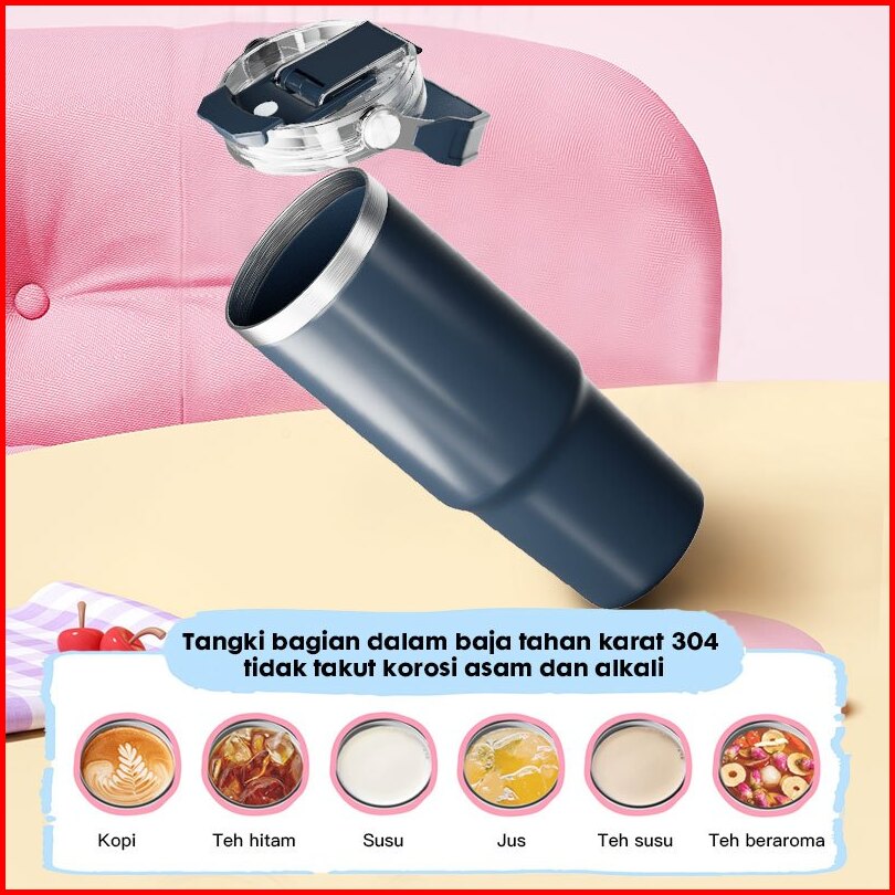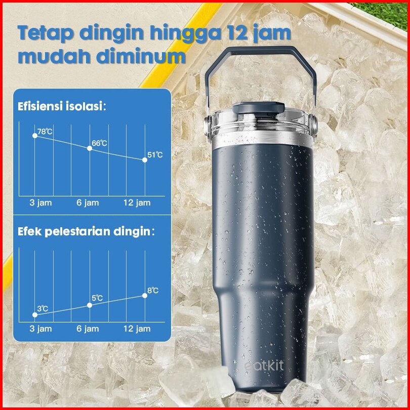Eatkit Tumbler Minum Stainless Steel 890ml Handle 2in1 Vacuum Insulated Portable Thermos Tahan Panas