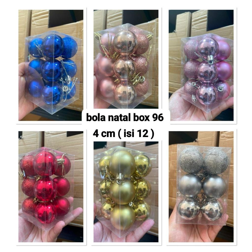 Bola Natal Box 4cm isi 12pcs Kode 96 Hiasan Pohon Natal Berwarna warni untuk Dekorasi Rumah