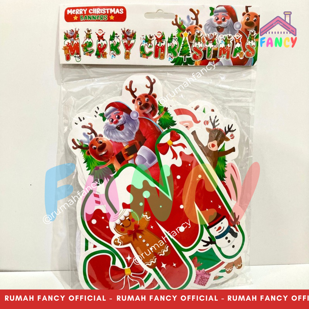Bunting Flag Banner Merry Christmas TERBARU Banner Natal Santa Claus Boneka Salju Pohon Natal Murah