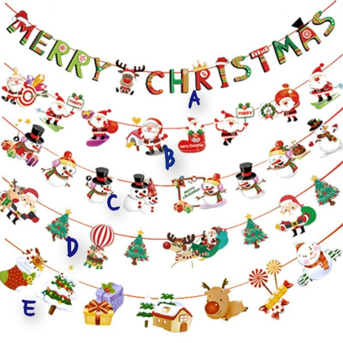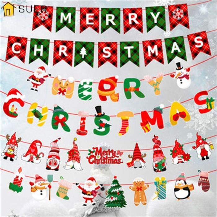 Bunting Flag Natal Garland Hiasan Dekorasi Banner Merry Christmas Santa Claus Snowman