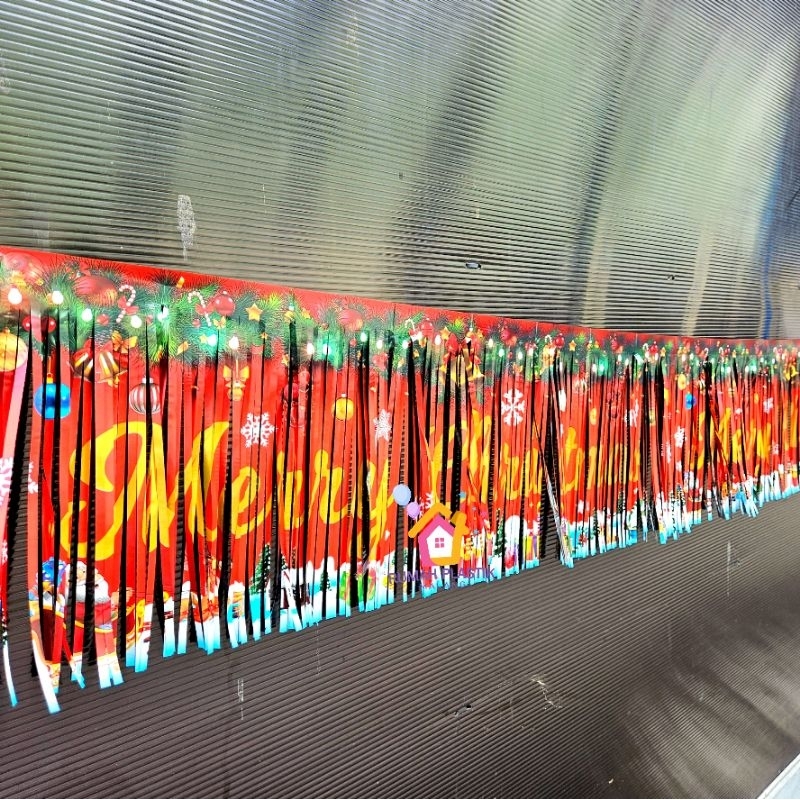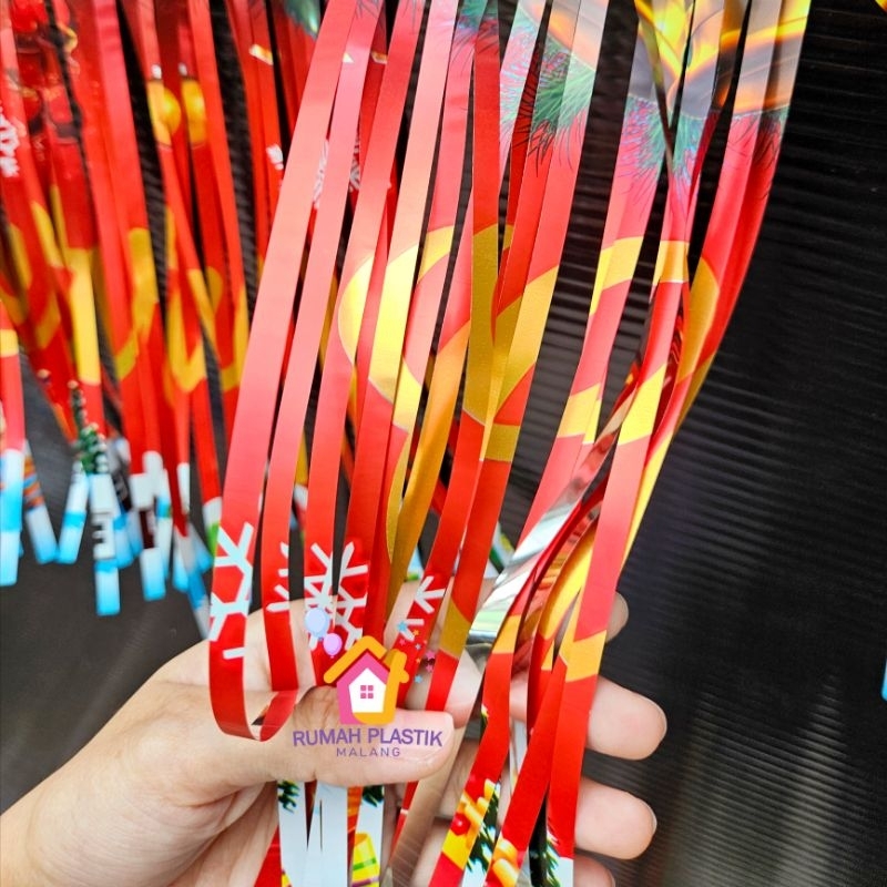 BANNER RUMBAI MERRY CHRISTMAS RED kuningan mengkilap selamat hari raya natal kelahiran tuhan yesus suwir foil tirai sliw