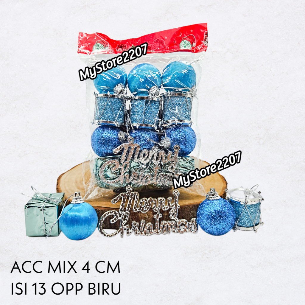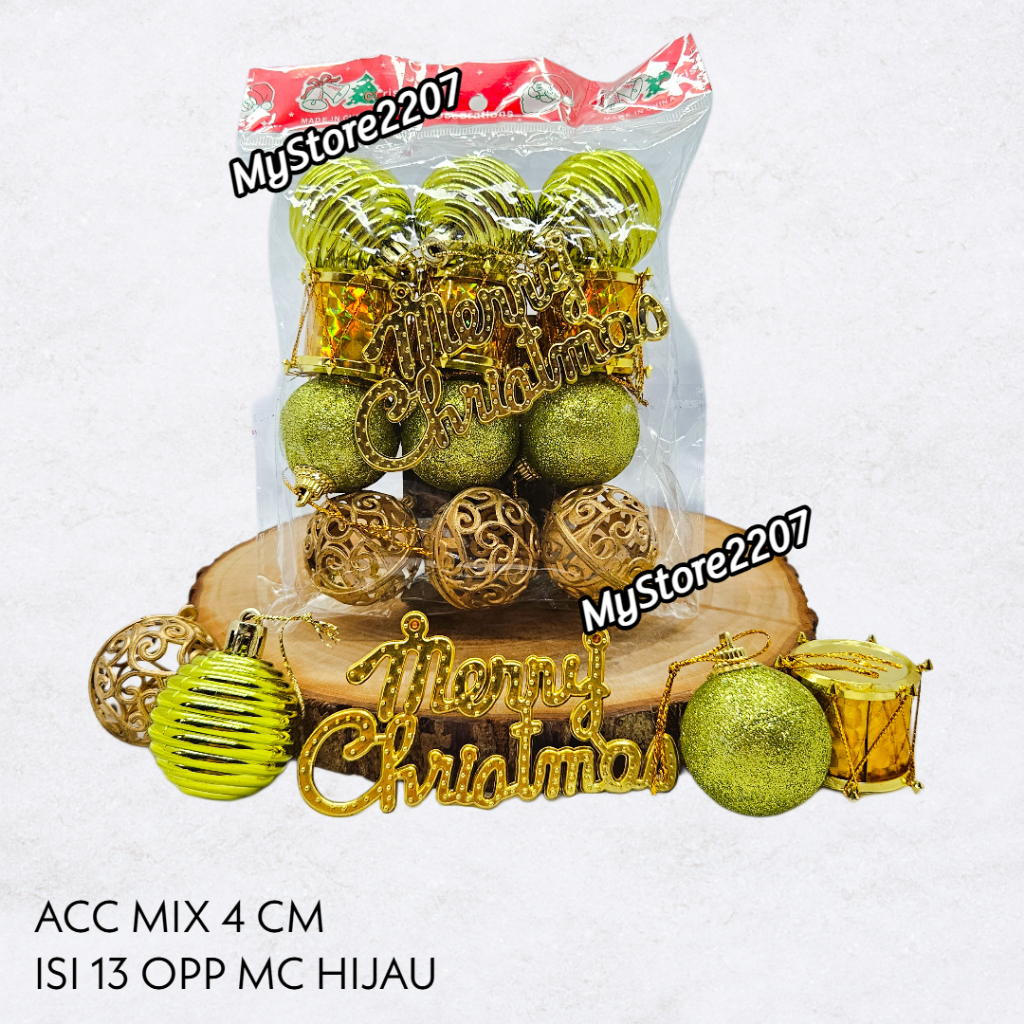 MIX 13 PCS BOLA NATAL 4 CM DRUM NATAL DEKORASI GANTUNGAN POHON NATAL PINUS