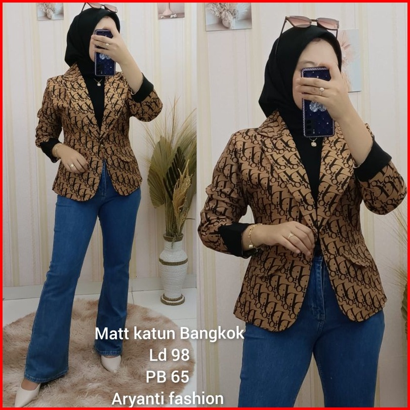 Blazer Wanita Viral Motif Full Print Ready Stock